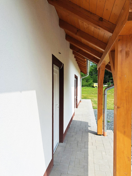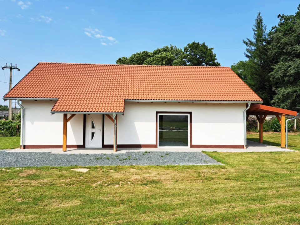 A Vas megyei Magyarlakon az osztrák határtól (Szentgotthárd) mindössze 6 km távolságra eladó egy 2026 közepén elkészülő, tágas terekkel rendelkező, nappali+3 szobás családi ház. A telek területe: 845 m2. Az épület könnyűszerkezetes technológiával készül, ablakai 3 rétegű üvegezéssel kerülnek kialakításra, mindegyikhez elektromos működtetésű aluminim redőnyök tartoznak. A tetőt TERRAN cserép borítja.