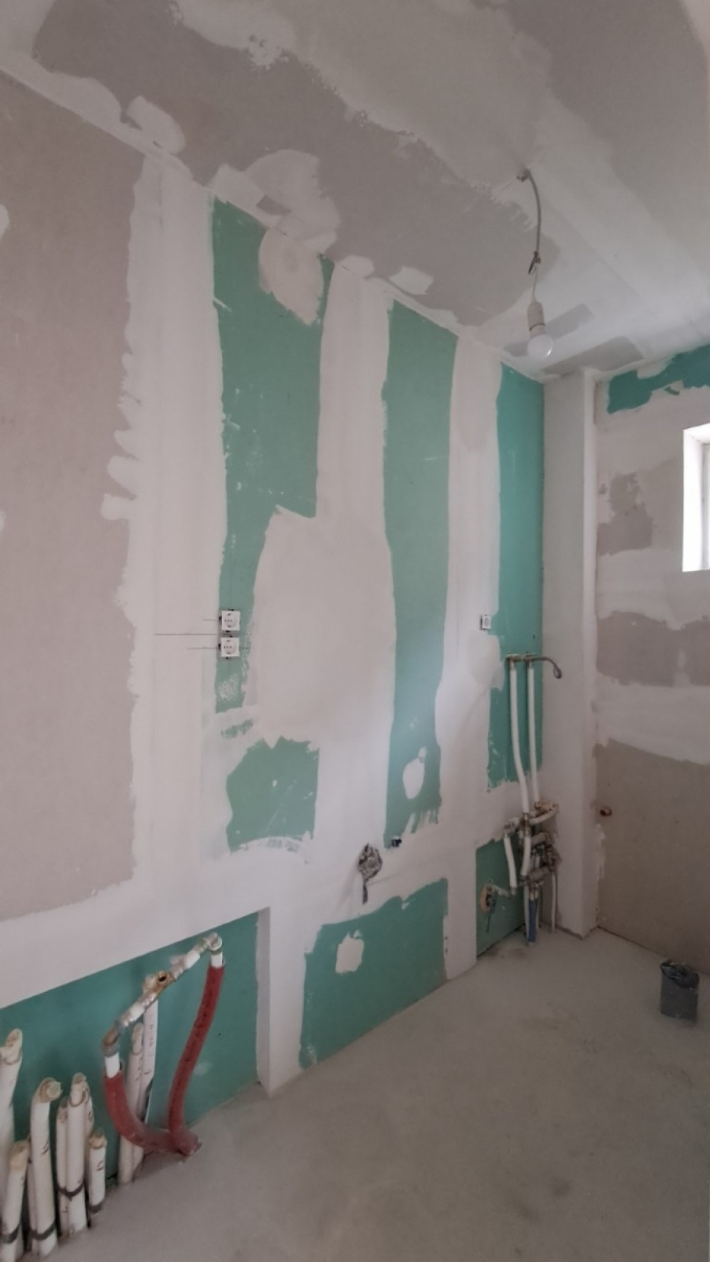 - a falak mindenhol gipszkarton borítást kaptak és elő lettek készítve festésre,