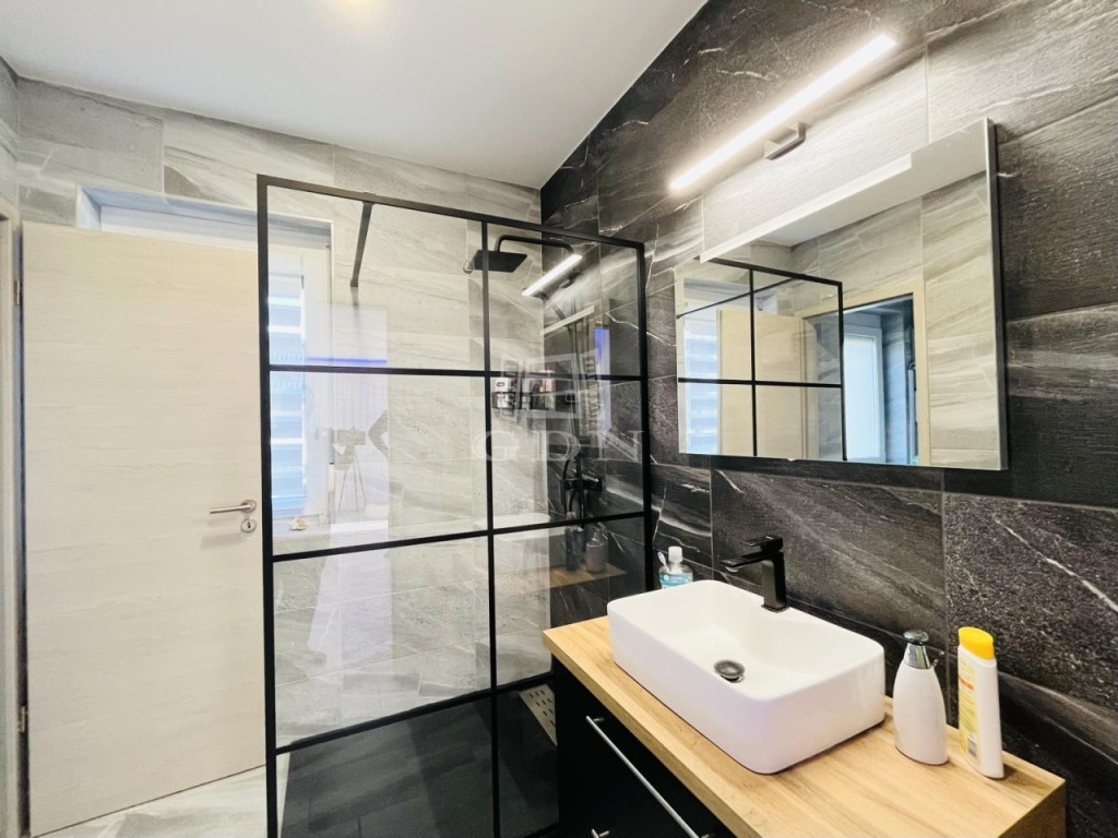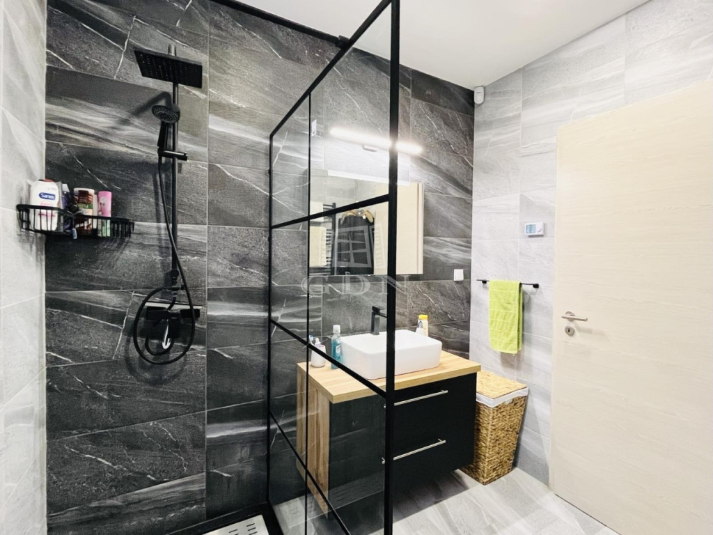 A tágas, napfényes otthon 3 kényelmes szobából, egy világos, teraszkapcsolatos amerikai konyhás nappaliból, elegáns, zuhanyzóval ellátott fürdőszobából, külön helyiségben lévő toalettből, valamint egy praktikus mosókonyha helyiségből áll - ideális elrendezéssel, amely a családi élet minden igényét kielégíti.