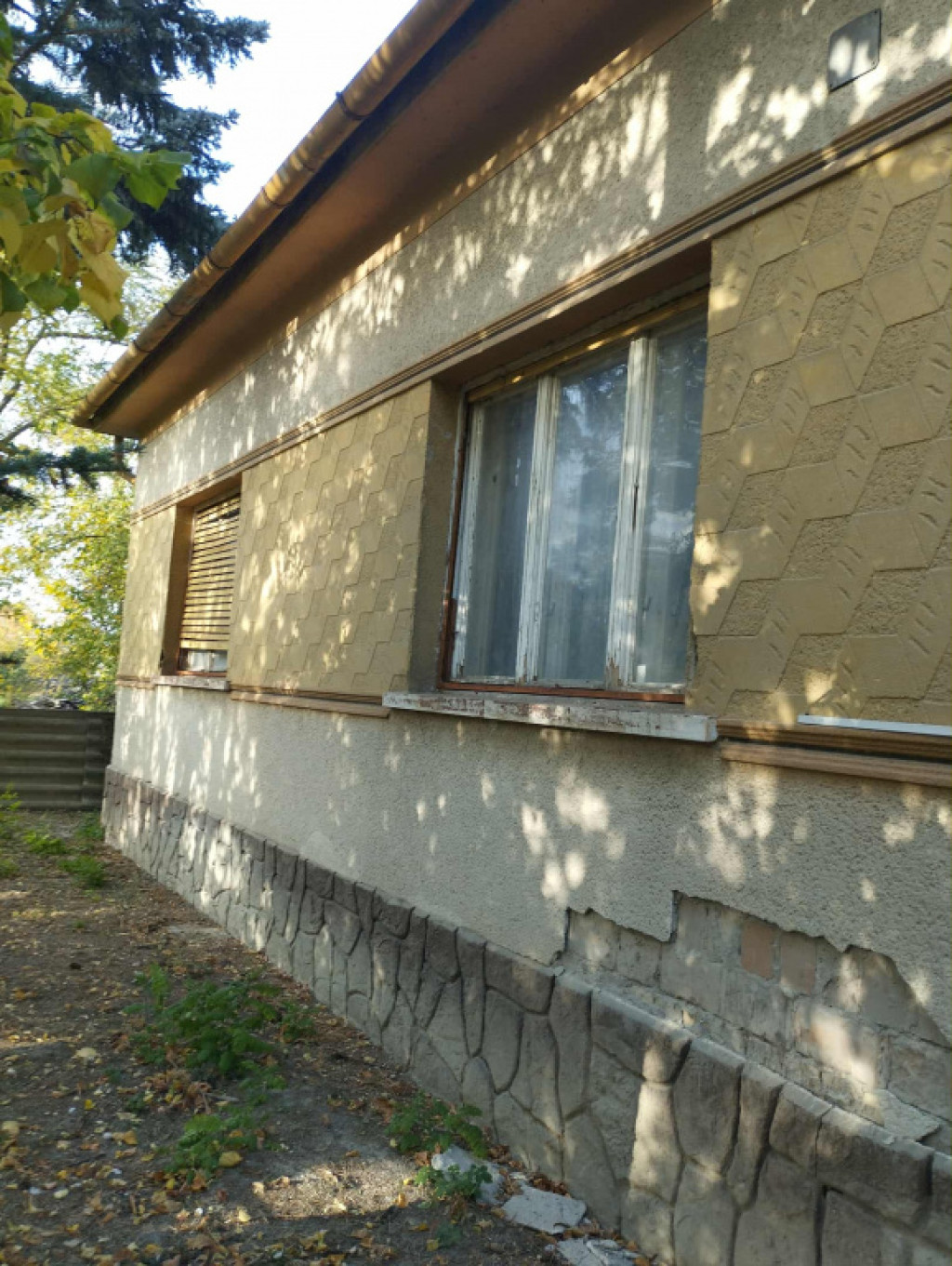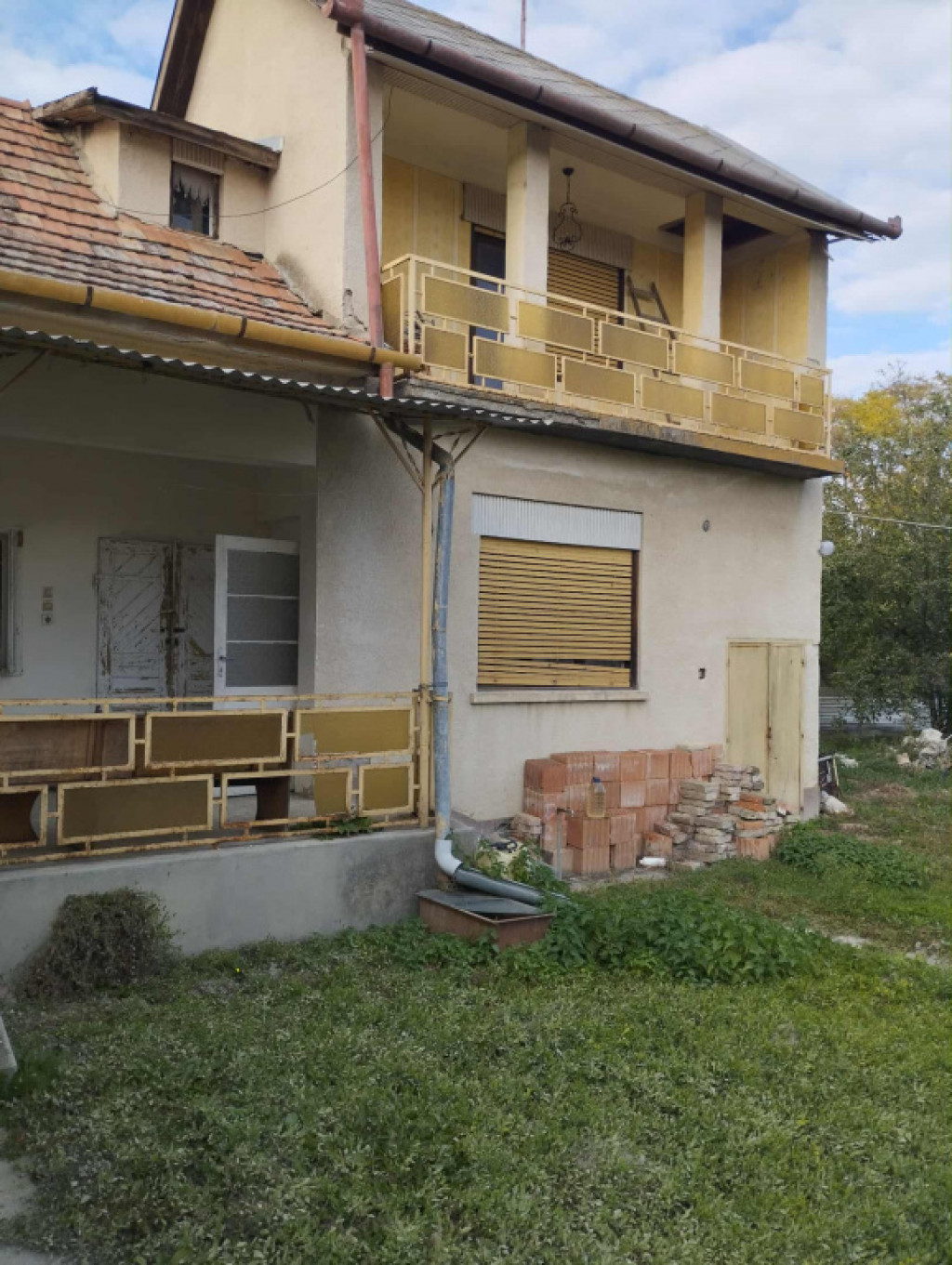 141 m2 téglaépítésű ház, beton alappal, cserép- és palatetővel fedett, fa nyílászárók (állapotuk rossz, cserére szorulnak)