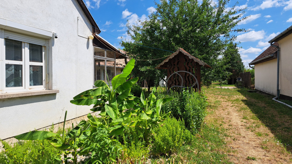 Az udvaron melléképületek , garázs, műhely ,tárolók állnak a lakók rendelkezésére.