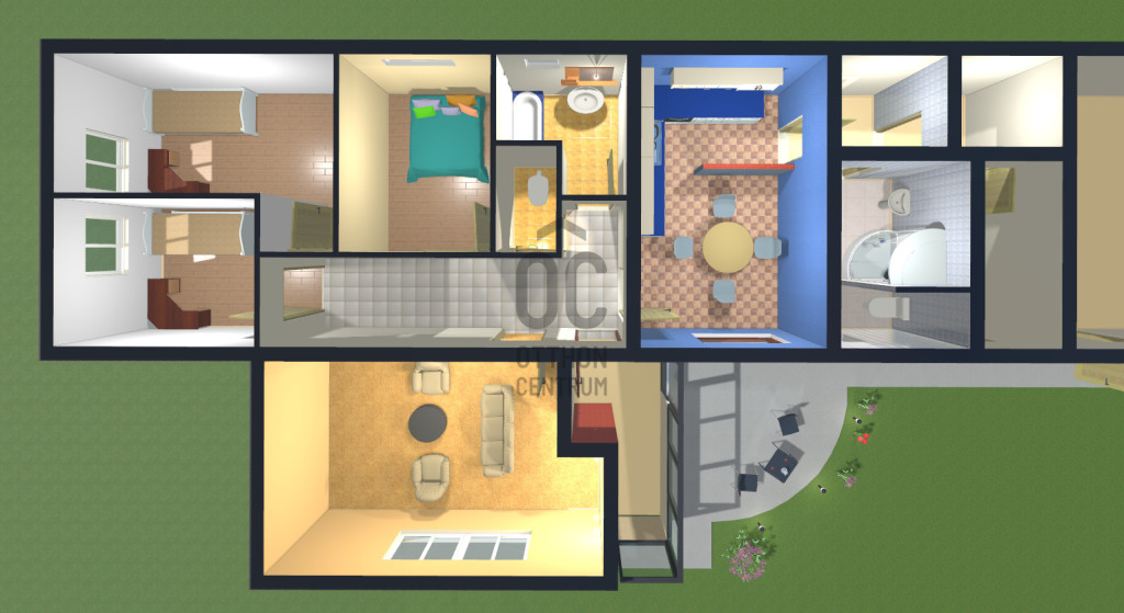 Elosztása: 3 hálószoba, tágas nappali,2 fürdőszoba, konyha. kamra, terasz ,pince.