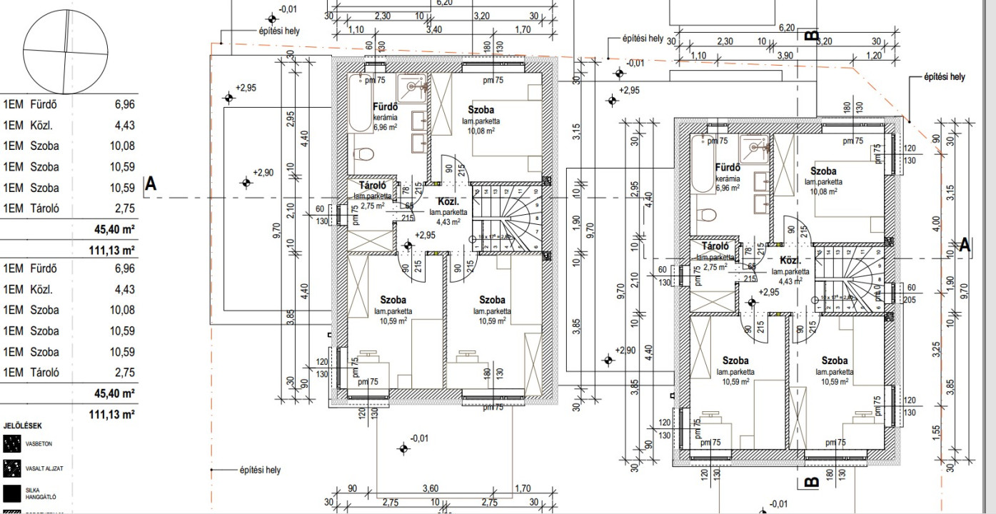 Mosonmagyaróvártól 1 percre lévő Villaparkban megvételre kínálok két nettó 111.13 m2-es tégla építésű ikerházat saját bejáratú telekrésszel. Az egyik ingatlan telekhányada: 320 m2, míg a másik 345 m2-es telekkel rendelkezik. Az ingatlanok felosztása a földszinten: előtér, konyha, nappali-étkező, háztartási helyiség, WC, terasz (11,12 m2), garázs (19.8 m2). Felosztás az emeleten: közlekedő, 3 hálószoba, gardrób és fürdő WC-vel. A ház szerkezete: tégla falazat, homlokzati és lábazati szigetelés, fafödém szigeteléssel, PVC hegesztett fedéssel. Nyílászárói 3 rétegű műanyag szerkezetű antracit színű nyílászárók. Fűtéséről megújuló energia gondoskodik (termálvíz), geotermikus hőcserélőn keresztül, padlófűtés hőleadással. A klímaelőkészítést az ár tartalmazza. A korszerű technológiáknak köszönhetően az ingatlan költséghatékonyan fenntartható, rendkívül alacsony rezsiköltséggel bír. A vételár tartalmazza a telek árat, az ingatlan emeltszintű fűtéskész állapotát és az 5%-os ÁFA-t. Igény esetén kulcsrakész befejezés is kérhető felár ellenében. Várható emeltszintű fűtéskész befejezés: 2027. március. A kisebb telken lévő ház vételára: 83.500.000 Ft (tartalmazza az 5%-os ÁFA-t), míg a nagyobb telekhányadú ingatlan ára: 83.990.000 Ft (tartalmazza az 5%-os ÁFA-t). Az ingatlanok alkalmasak az Otthon Start Programra és a CSOK Pluszra egyaránt. Amennyiben az eladó ingatlan felkeltette az érdeklődését hívjon a megadott telefonszámon +36709484966 vagy írjon e-mailt a westsidecredit@gmail.com címre. Irodánk teljeskörű hitelügyintézésben is rendelkezésre áll.