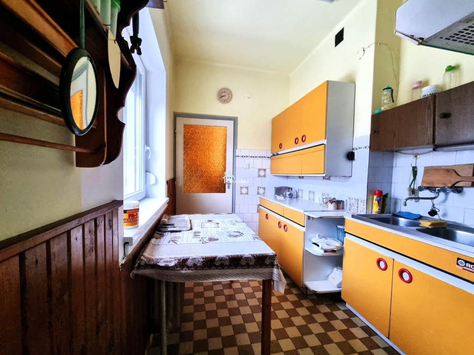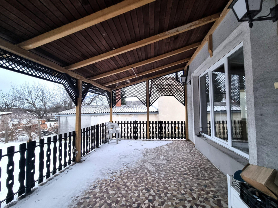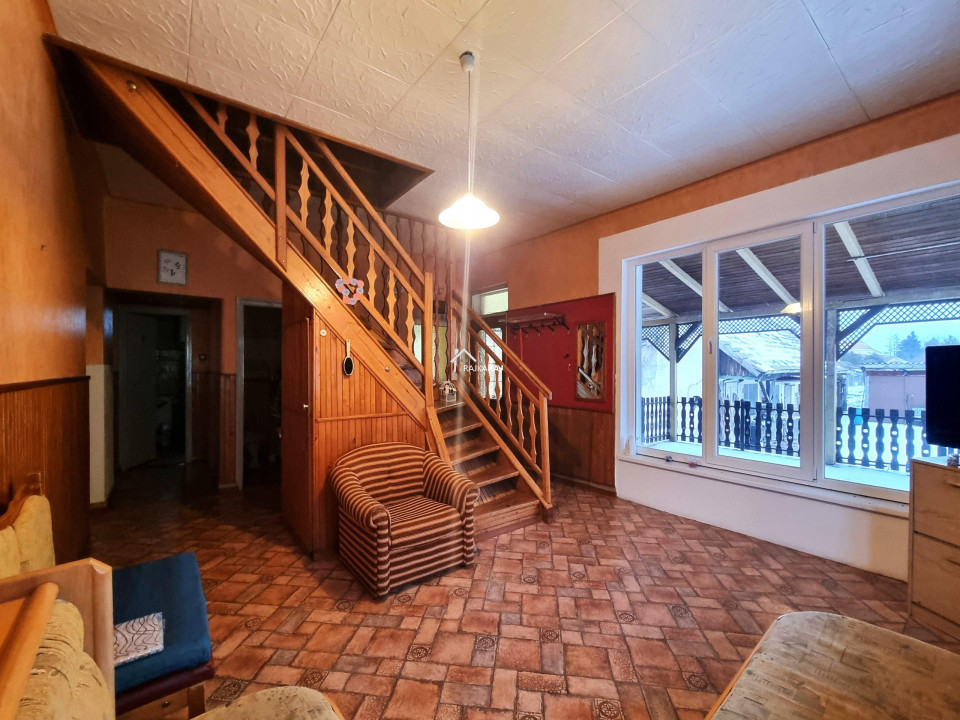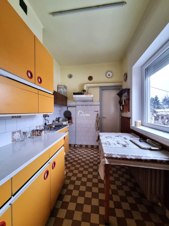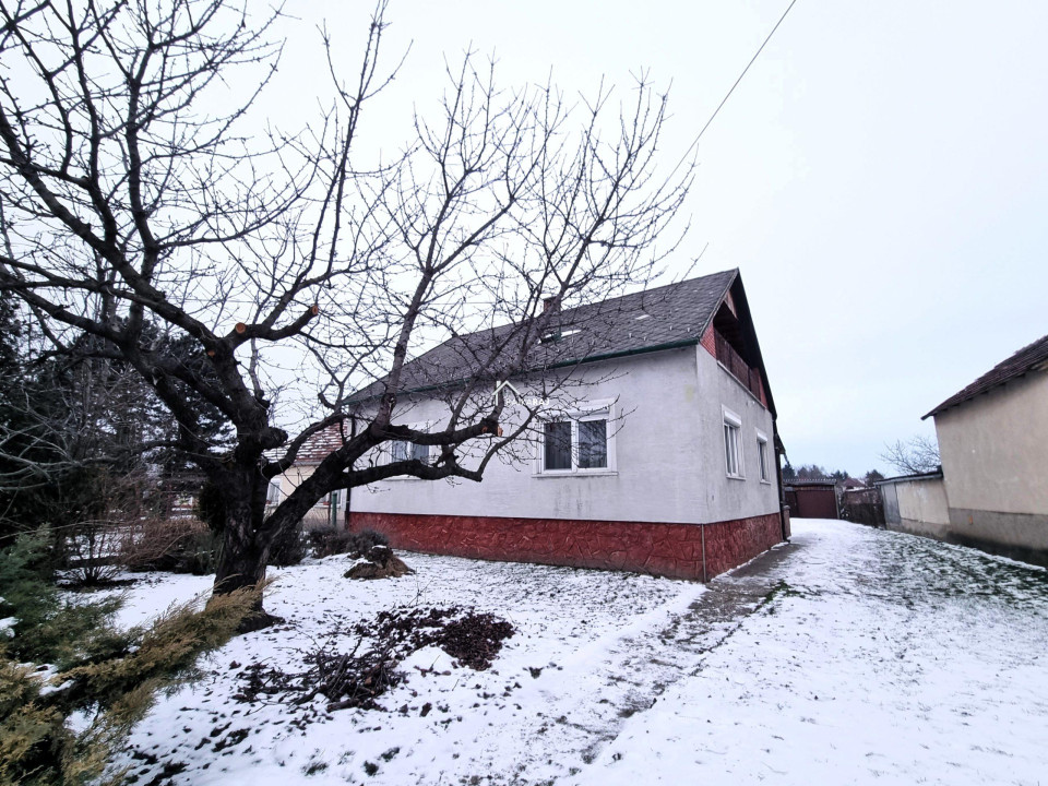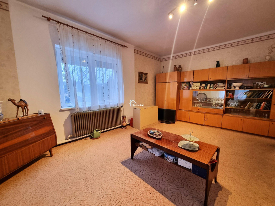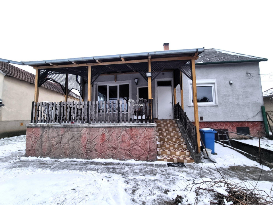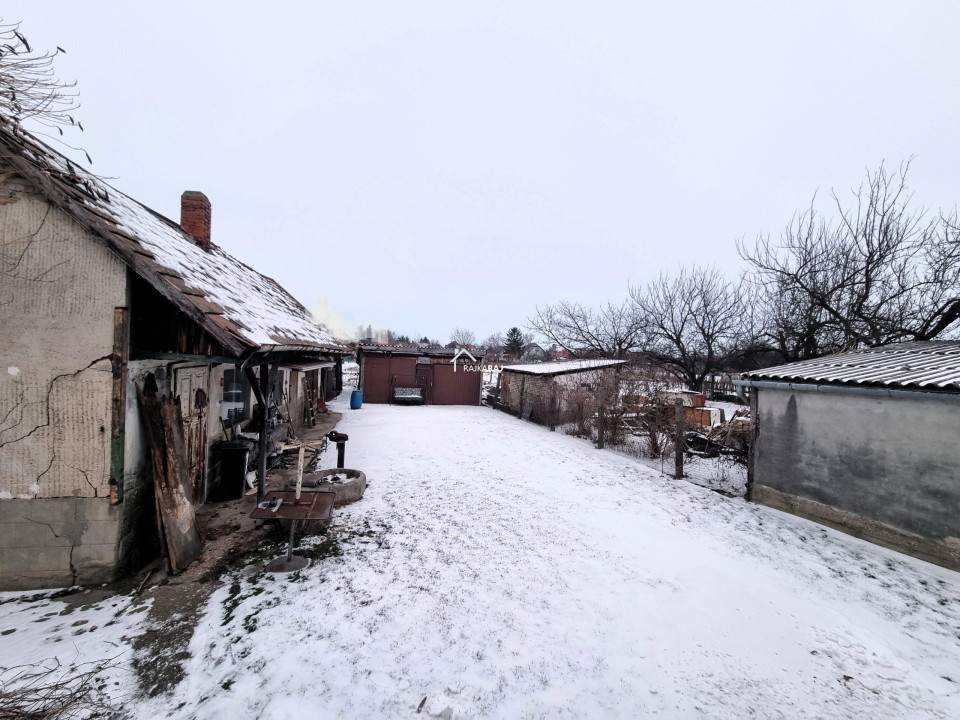 A nyílászárók műanyagok melyeket 4 éve cseréltek. Az ablakok redőnyökkel és szúnyoghálókkal felszereltek. A fűtés vegyes tüzelés radiátoros hőleadással, a gázcsonk pedig az udvarban van. A 3 x 16 A áramerősség mellé ipari áramot is bevezettek. A nappali tágas és világos élettere az otthonnak, ahonnan egy 20 m2-es nagyméretű fedett terasz nyílik. A ház kis területe alatt 20 m2-es pince található. Az udvarban egy nagyméretű tégla melléképület áll garázzsal és 2 kocsibeálló jellegű beállóval. Az udvar öntözése szivattyús fúrt kútról megoldott. Az ingatlan felújítást igényel de statikailag jó állapotú.