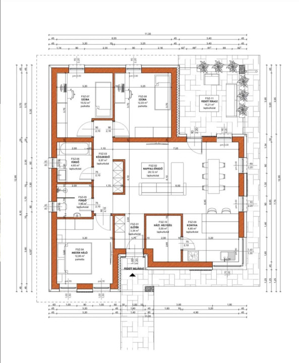 -A ház melegét és hűtését egy levegő-víz hőszivattyú biztosítja padlófűtéssel és Fan- coil mennyezet hűtéssel.
