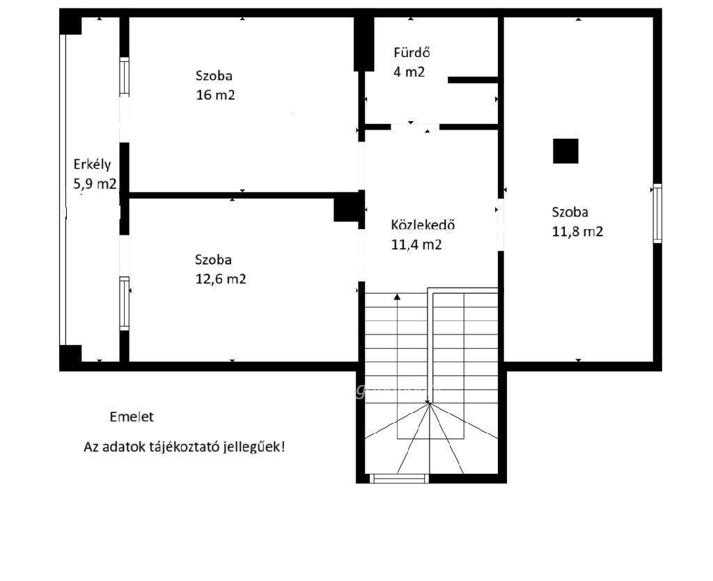 A földszinten hálószoba, tágas nappali étkezővel, konyha és fürdőszoba található, az emeleten további 3 szoba, erkélyek és egy fürdőszoba került kialakításra.