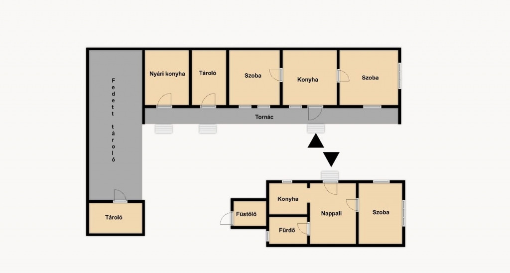 - ca. 80 nm-es lakótér, melyben 2 szoba, konyha találhatók