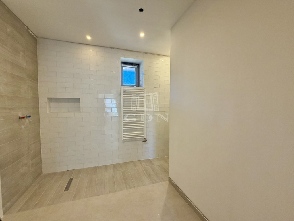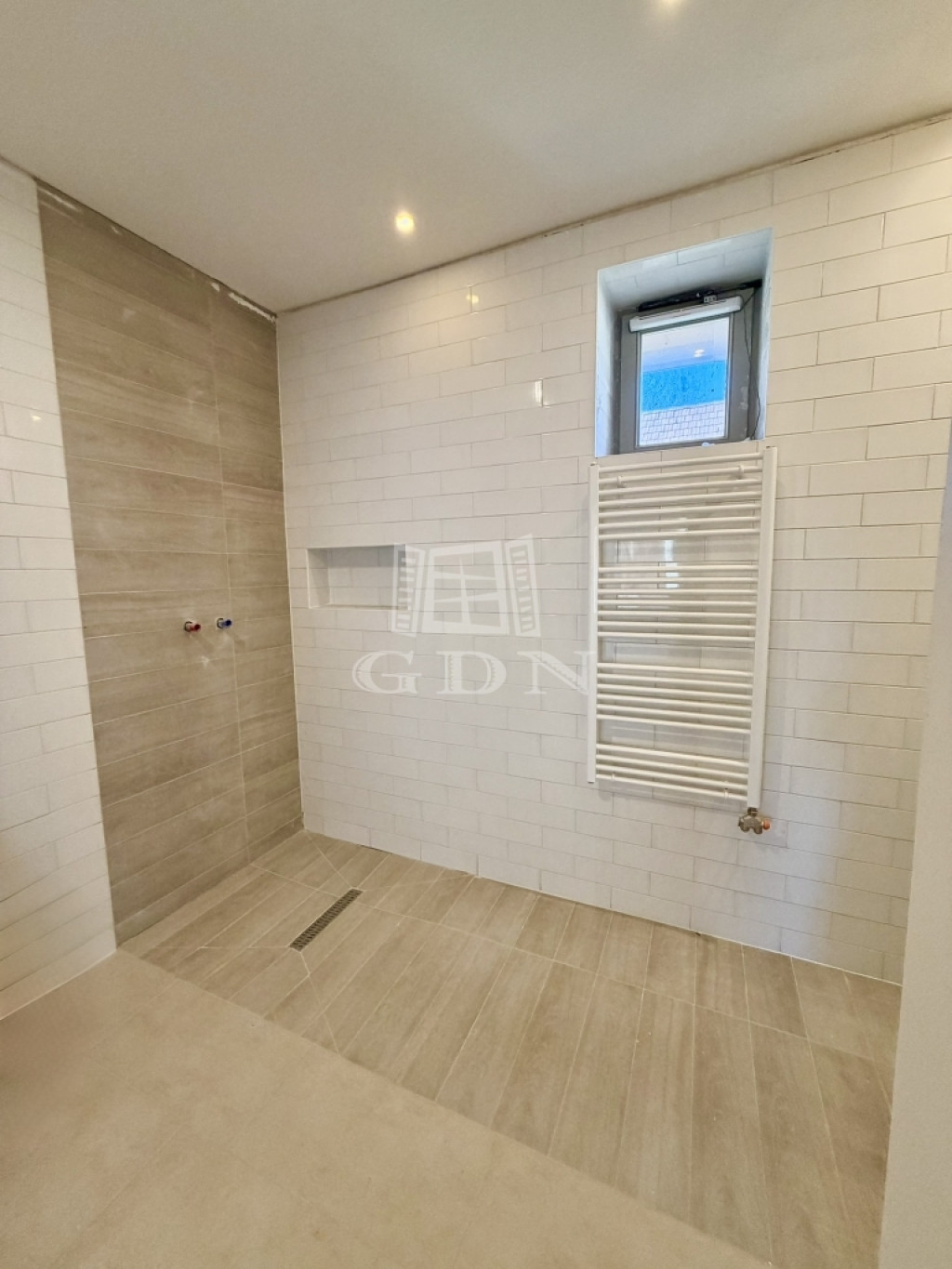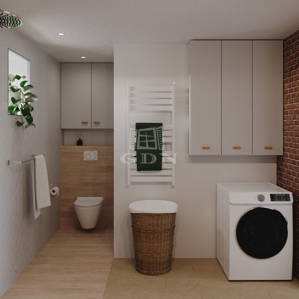 A fűtés kondenzációs gázkazánnal történik padlófűtéses és radiátoros hőleadó egységekkel. Kialakításra került egy modern zuhanyzó WC-vel és egy külön WC is. A ház hátsó, kert felé néző részében található a konyha, ahonnan az 50 m2-es teraszra van kijárat.