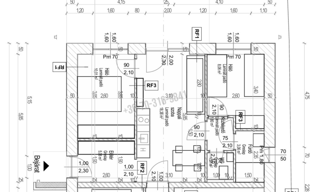 A fenti lakásokhoz erkély, a két szélső földszinti lakáshoz terasz tartozik – ezek plusz költséggel érhetők el.