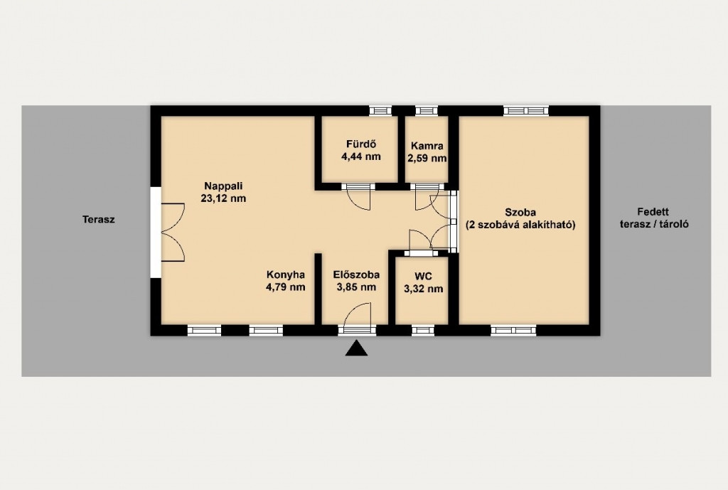 - 80 nm-es lakótér, földszintes térrendezés