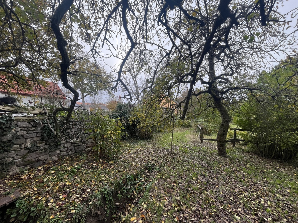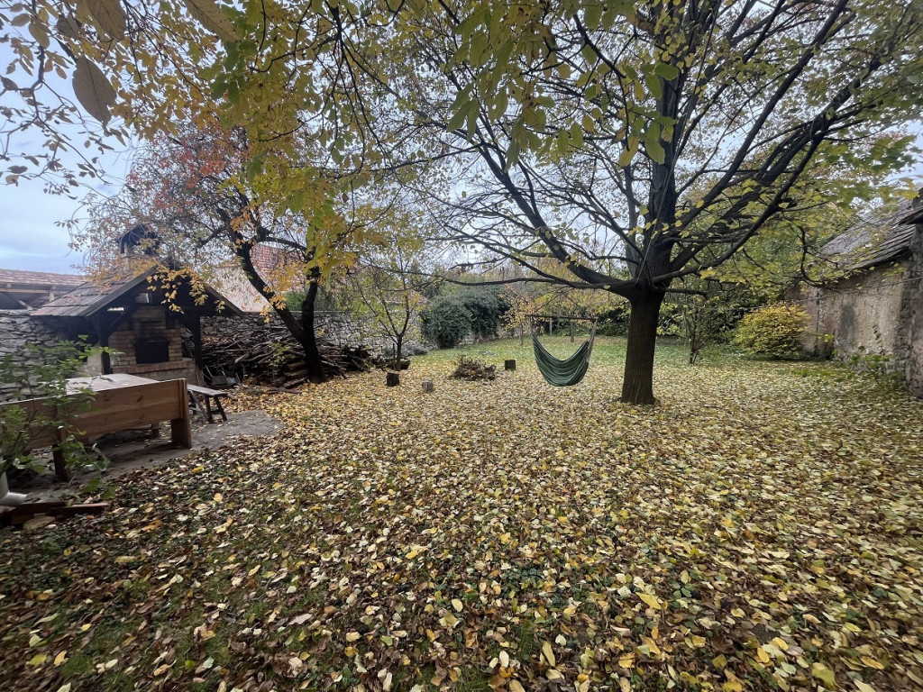A kert tényleg igazi tündérkert ellátja háziakat (és szerintem a tágabb rokonságot is) szelíd gesztenyével, körtével alamával, szilvával, rengeteg szederre, málnával, szőlővel almával, fügével, barackkal. A fák helyi ősfajú gyümölcsfák, permetezés nélkül is teszik a dolgukat. A kertben 2 ásott kút is biztosítja az öntözéshez a vizet. A nagy kertnek két bejárata is van egyik a falu fogalom mentes főutca felé, másika házak mögötti mezők felé. Az épület végén az kert felőli részen hangulatos kiülő, árnyékos szőlőlugas és kenyérsütő kemence biztosítja a kerti jólétet.