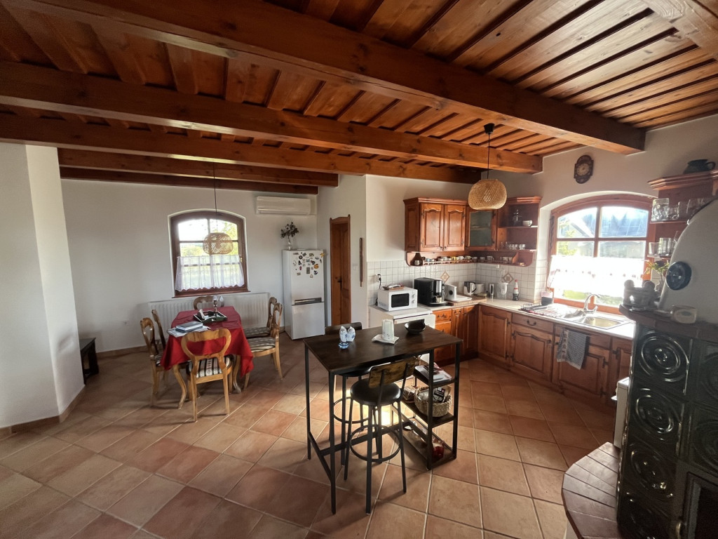 Mencshelyen a település szélén, belterületi remek szinte végtelen tájpanorámás, nagy teraszos, RITKASÁGSZÁMBA MENŐ EGY SZINTES családi ház eladó. A ház kitűnő elrendezésű: Óriási 90 m2-es terasz, 2 gépkocsinak garázs, fa tároló, kazánház, remek, búbos kemencés nappali amelyen tere egybe folyik a étkezővel, konyhával. A 3 hálószoba mindegyike egészséges méretű. További helyiségek fürdőszoba, mosdó-wc, gardrób.
