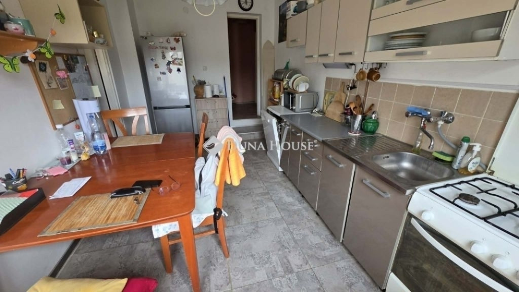 Mendén (Pusztaszentistván) a vasútállomás közelében eladó 2000-ben téglából épült - étkező/konyhás + 2 szobás jó állapotú lakás. Az ingatlan akár 2 héten belül birtokba vehető! Az ingatlan egy családi ház teljesen különválasztott emeletén van - külön kis kertrésszel és bejárattal - ügyvédi megosztóval! Téglából épült - 10 cm-es nikecell szigeteléssel - összközműves - fűtése gázkonvektorral történik. Bejárat a házba a kizárólagos megosztott panorámás kerten keresztül (120 m2). Innen egy fedett teraszhoz jutunk, melyből az előszobába lépünk. Szemben a mosdó, továbbhaladva mögötte a fürdő szobát találjuk. jobba pedig a nagy szobát erkéllyel. Balra a közlekedőből nyílik a konyha/ebédlő, melyből még egy nagy szoba nyílik, melyhez erkély rész is kialakítást kapott.2022-ben új burkolatokat kapott a lakás - járólapot és a szobák laminált parkettával lettek ellátva! A villanyvezetékek cseréje megtörtént rézvezetékekre! Az ablakokra szúnyoghálók kerültek. A lakás belső újrafestése is megtörtént A villanyóra 25 amperes.A bútorok az ár részét képzik - kivéve kanapé, tv, mosogatógép, hűtőszekrény és személyes tárgyak (ruhák, könyvek stb.)Ide csak költözni kell! Közös költség nincs! Internet és telefon bekötve. Csendes, rendezett kertvárosias övezet - normális szomszédokkal! A másik tulajdonos a földszinti részben lakik - külön kerttel. Az egész ház jó állapotú egyébként.NÉzzük meg együtt!Közelben: vasútállomás - Pusztaszentistván megálló (3-5 perc kényelmes sétával megközelíthető).10 perces sétányira a központja: Iskola, kilátó, étterem, játszótér, büfé, focipálya, lovasudvar, abc, orvosi rendelő stb.