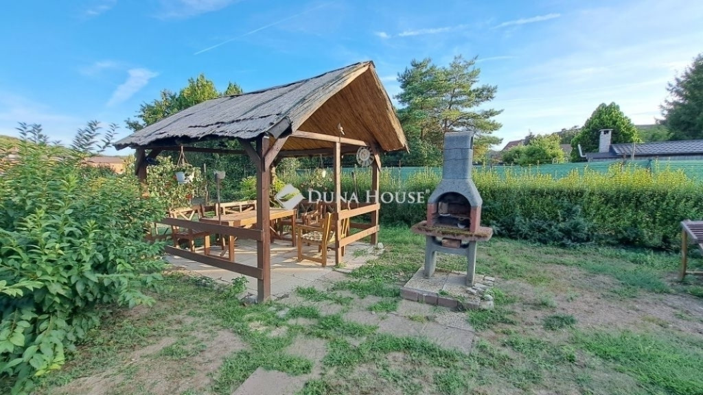 A telek 900nm, teljesen körbe kerítve. A ház mögött egy két autónak is megfelelő kocsibeálló kapott helyet. A rendezett kertben megtalálható egy szaletli is, ami szintén hozzájárul, hogy maximális kényelemben tölthessük otthon a kertünkben a szabadidőnket.
