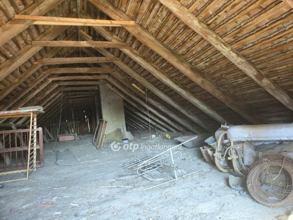 A tetőn régi kis cserepek vannak ugyan, de gerince nyílegyenes, szarufái kiállták az idő rohamait. A telek éppen elég arra, hogy gyermeknek játszósziget kerüljön kialakításra, míg a telek végében műhely, ólak és egy beton alapú garázs-kezdemény található. A betonalap falazhatóra került kialakításra, de ezenfelül igény szerint kialakítható. A ház verandája közel 30 négyzetméternyi, beépítése esetén 120 négyzetméteres élettér is elérhető.
