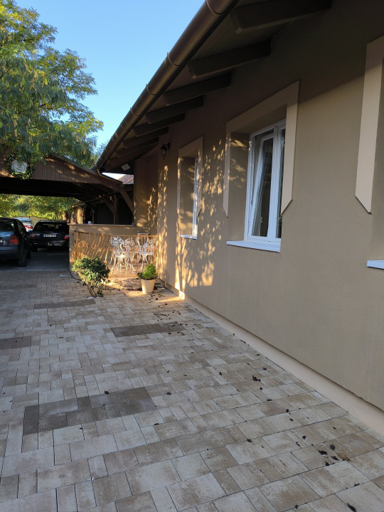 A ház fő része a nappali-étkező, konyha, konyhai előkészítő, reggeliztető étkező, valamint a fürdőszoba kapott helyett, míg a hálószobai blokkot a fedett, összekötőterasz választja el, biztosítva a pihenni vágyók nyugalmát. Itt 3 hálószobát, vizesblokkot és tágas nappalit alakítottak ki. A telek 3 részre osztott, az első és középső rész térköves burkolatú, itt található a több autó részére kialakított fedett gépkocsibeálló, valamint egyéb kiszolgáló helyiségek. A telek további részén exkluzív kialakítású lovasistálló boxokkal (nagyon szép!), ami akár egyéb, ipari tevékenységre is használható, de a lovassport szerelmeseinek egy igazi álom, főleg a hozzátartozó futtató-legeltető területtel. Természetesen minden vezeték a kor elvárásainak megfelelő, klíma, és egyéb extrák állnak rendelkezésre.