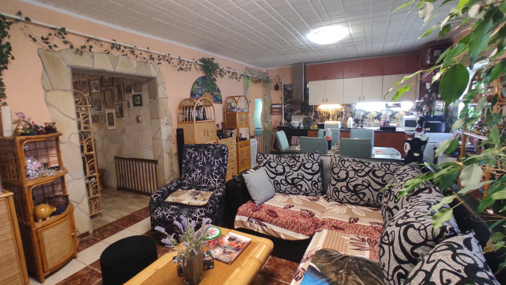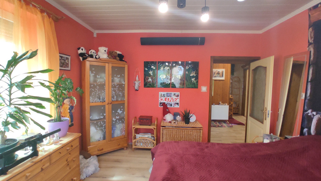 Földszinten 2 nagy méretű hálószoba, fürdőszoba, külön WC helység, lépcsőház, amerikai konyha nappali és kamra kialakítva
