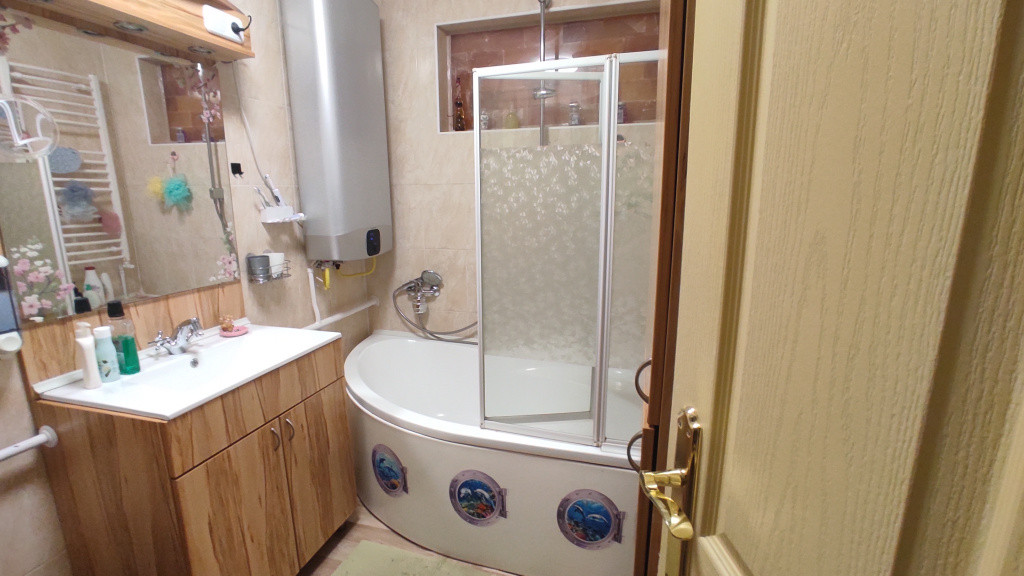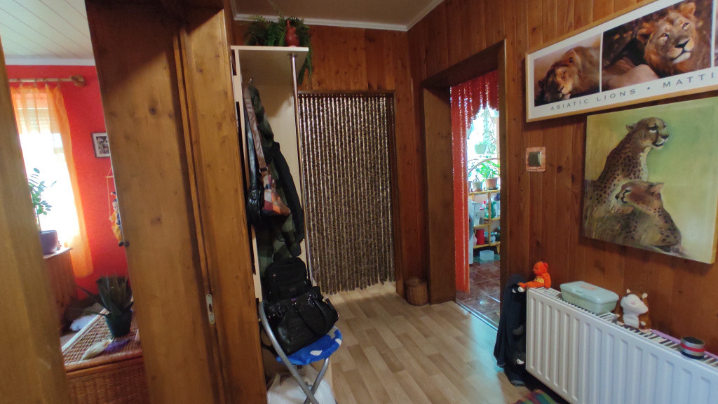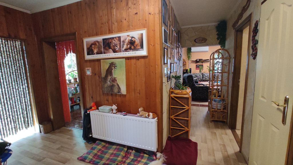 Nappali,konyha, fürdő, WC, előszoba, padlófűtéssel a hálószobákban lapradiátorok adják a meleget. Beépített konyhabútor, kerámia főzőlap.