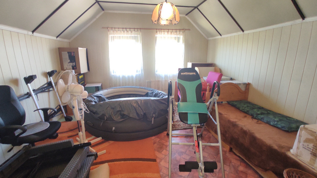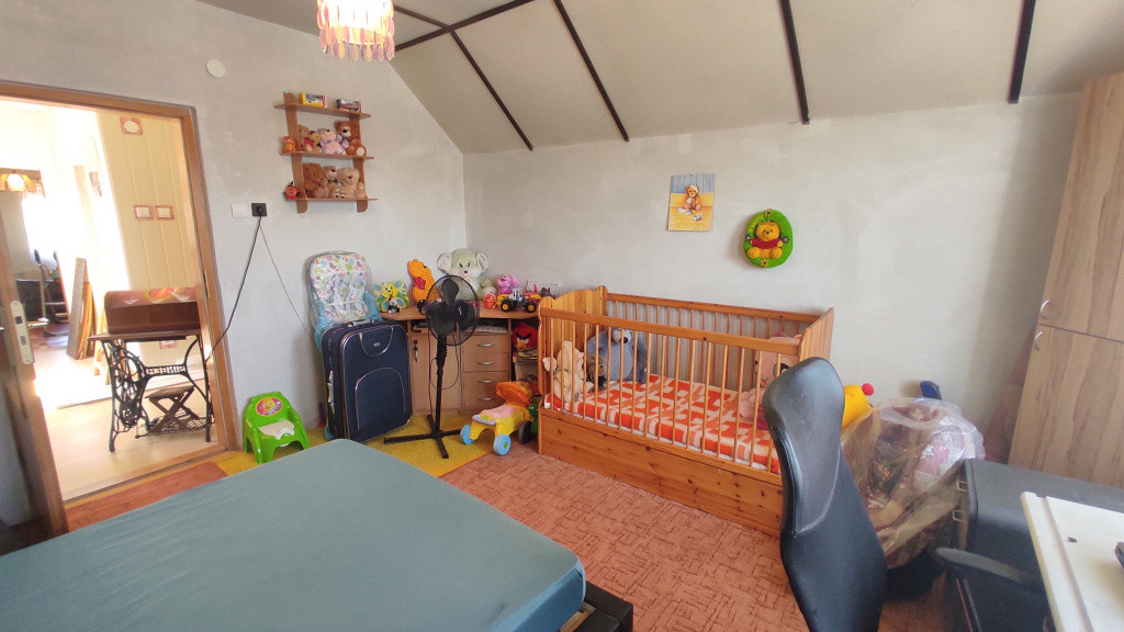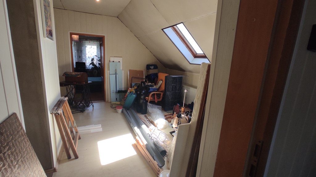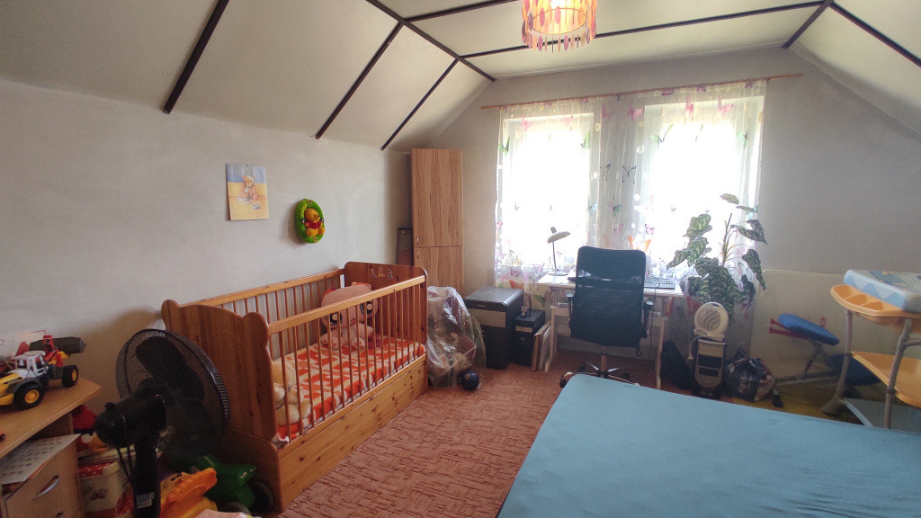 A tetőtérben 2 nagy hálószoba és egy kis tároló kialakítva. Fürdő és WC nincs kialakítva az emeleten.