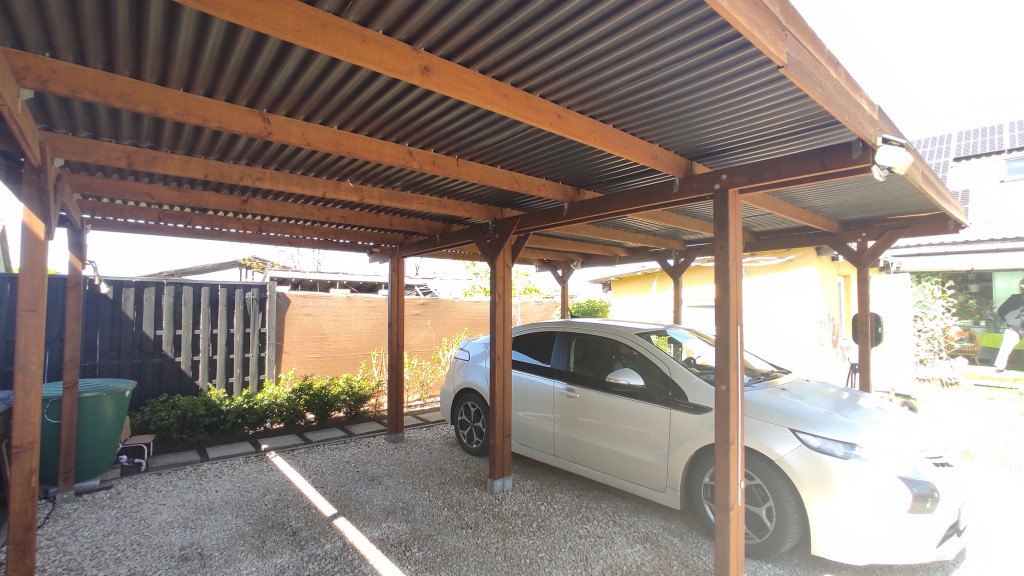 Elektromos távirányítású kapuval felszerelt, 2 fedett kocsi beálló kialakítva az udvaron és egy melléképület ahol a cirkókazánrendszer