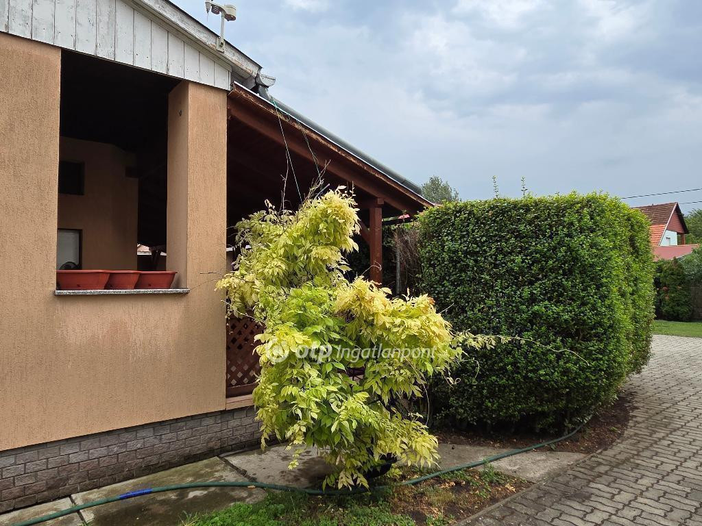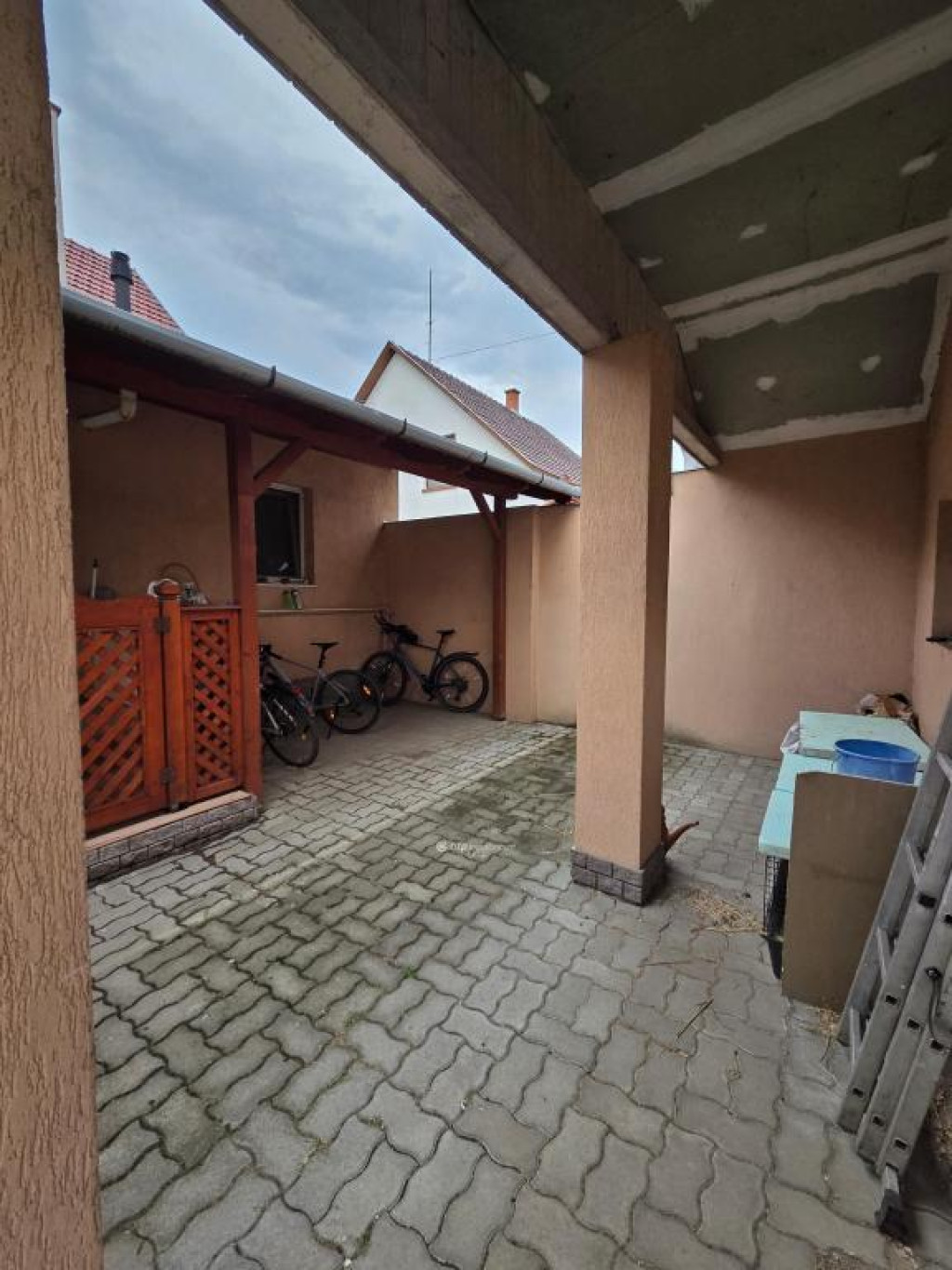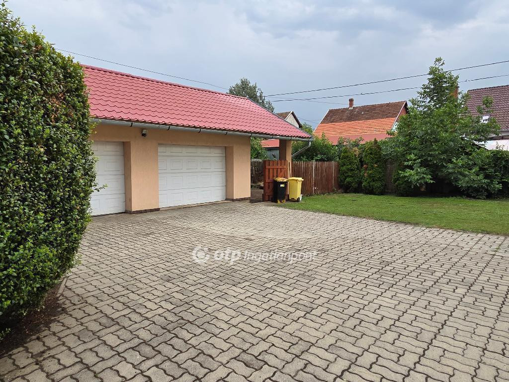 A telek 650 m2. Az udvar a garázsig térkövezett, hátul füvesített és van egy előkertje is. A fedett terasz mellett van egy félig fedett terasz is, mely a garázsok oldalához vezet. Van egy fúrt kút is a telken.
