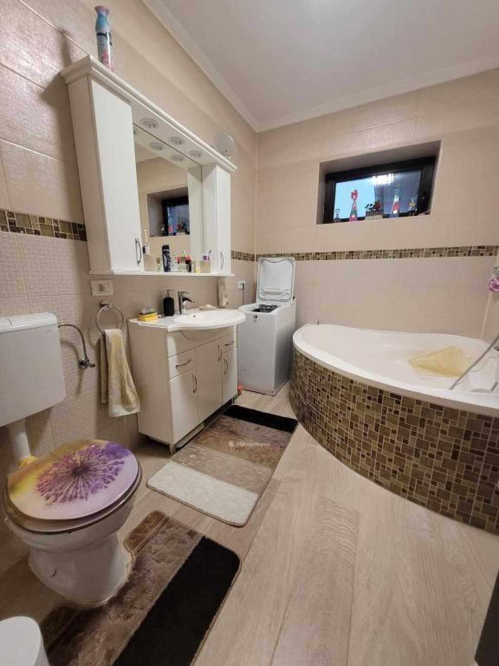 A konyhában, az előszobában, a kamrában és a fürdőszobában új járólap került letételre. A 2 szobában 18 cm vastag, új laminált padló található.