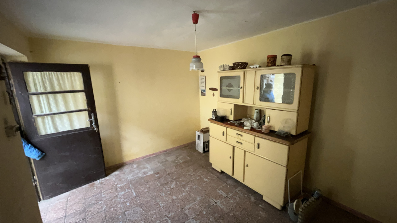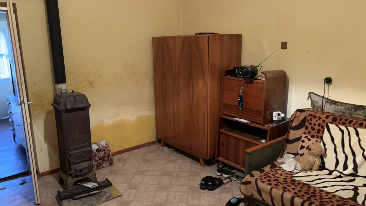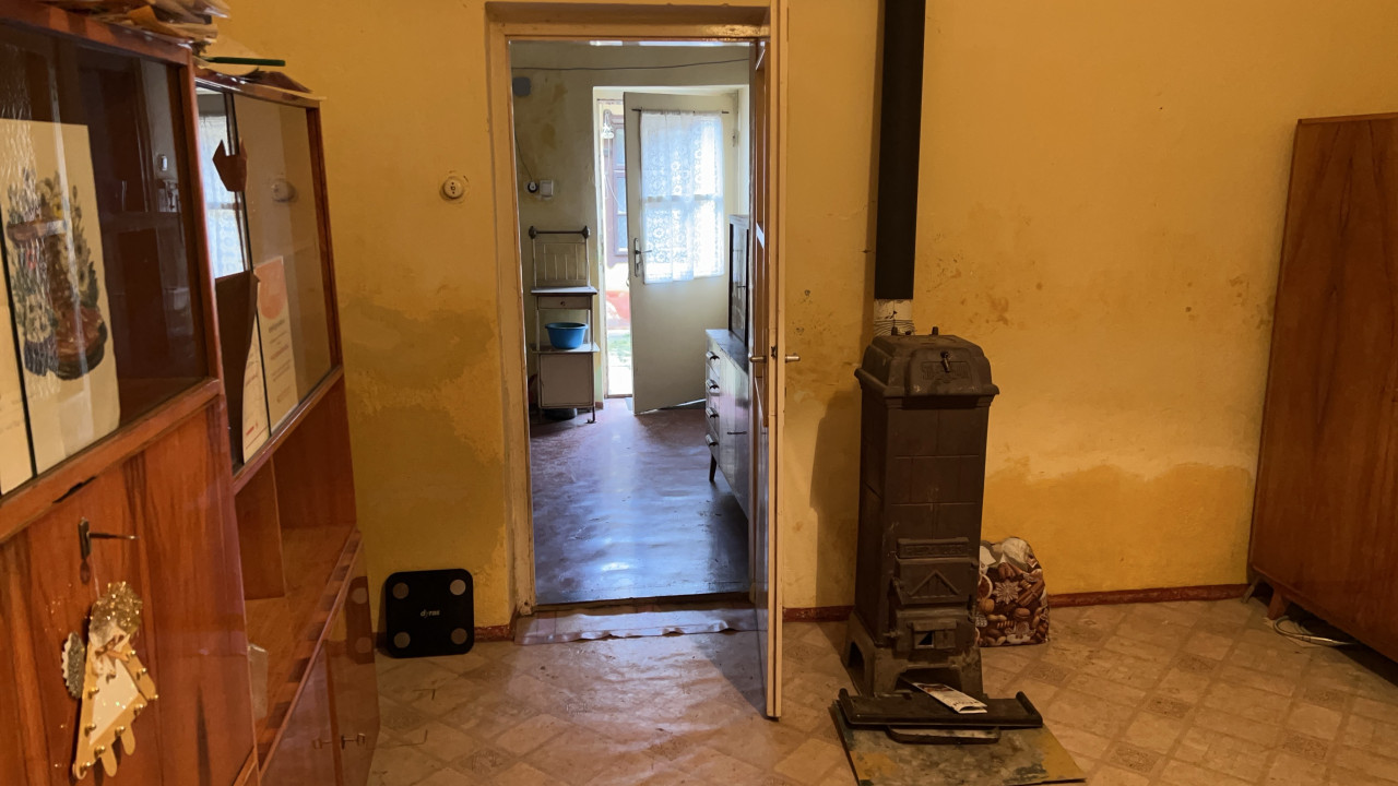 A fűtés fa és széntüzelésű kályhával megoldott. A ház kis ráfordítással csinosítható.