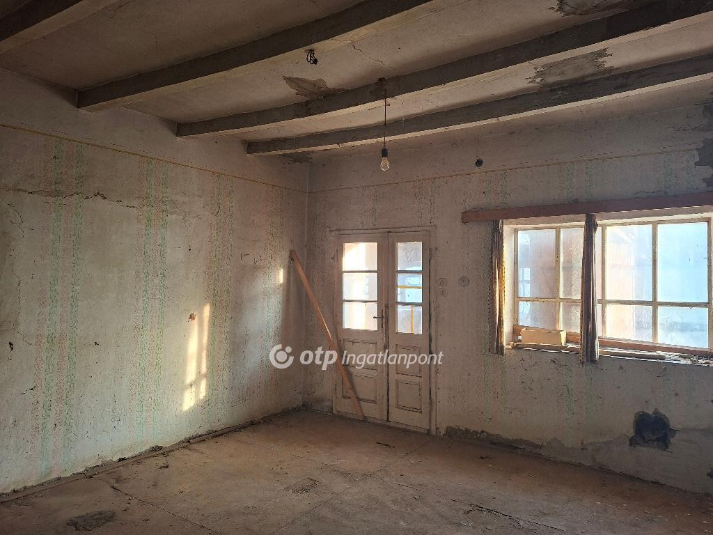 A 90 nm-es családi házban nappali-étkező, 2 szoba, tágas előszoba, konyha, kamra, közlekedő, külön fürdőszoba és wc helyiségek vannak kialakítva. Fűtés nincs, de a korábbi gázkonvektorok leágazásai rendelkezésre állnak, így a készülékek visszahelyezésével gyorsan megoldható. Az utcai nagy szoba és az előszoba betonozott, az utcai ablakok és a bejárati ajtó új, műanyag, hőszigetelt. A tágas, napfényes ház jelenleg teljesen felújítandó állapotú. Minden helyiségben a padozat kialakítása, a falak vakolása indokolt. Víz-, villany-, és gáz szolgáltatás rendben, a városi csatornarendszerre azonban nincs rákötve, ez a feladat az új tulajdonosra vár.