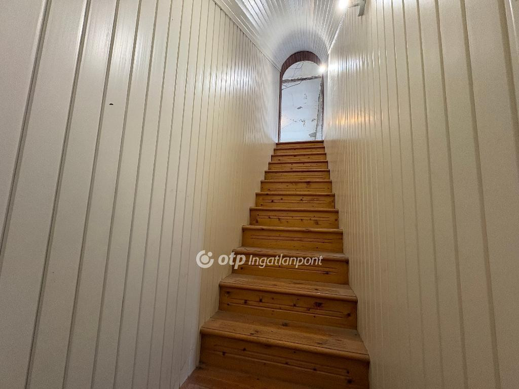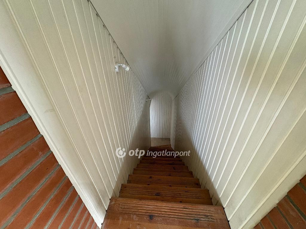 Fő lakrész és belső lépcsőház: Az emeletre egy külső betonlépcső vezet fel. Innen jutunk be az emeleti szintre, ahol egy belső lépcsőházon keresztül közvetlen átjárás biztosított az alsó szintre és a garázshoz is.