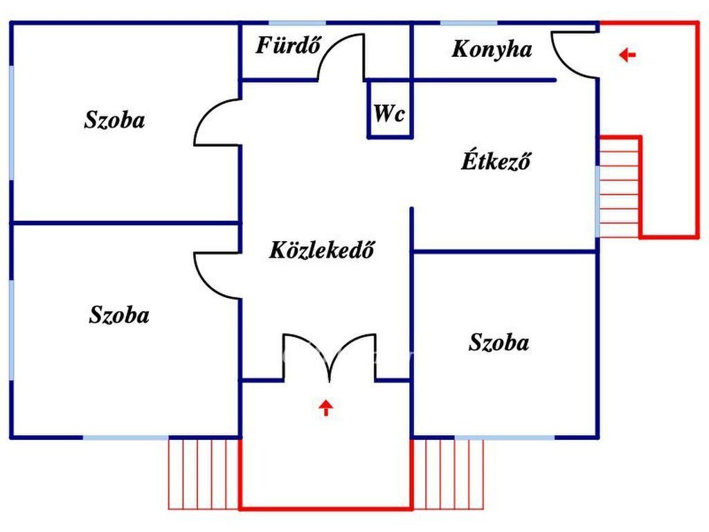 A ház praktikus elrendezésű: 3 szoba, konyha, étkező, fürdőszoba és külön WC található benne, így kényelmes életteret biztosít a mindennapokhoz.