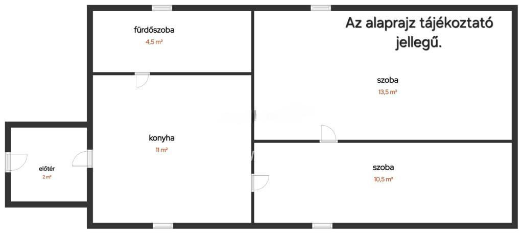 A ház alapterülete 40 nm, belmagassága 2 méter, és egyszintes kialakítású. A helyiségek elrendezése praktikus: az előtérből nyílik a konyha, onnan pedig a 4,3 nm-es fürdőszoba, a 10,5 nm-es félszoba, valamint a 13,4 nm-es szoba. A ház körbejárható, udvari és utcai parkolási lehetőség is adott.