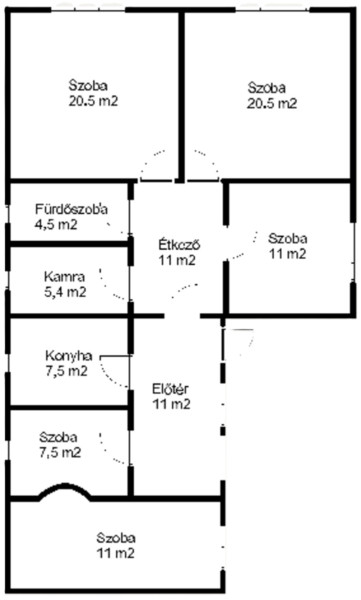 A fő épület 73 nm nettó alapterületű, 3 szobás családi ház. Bővítéssel előtér, konyha és 1 + 1 fél szoba van kialakítva.