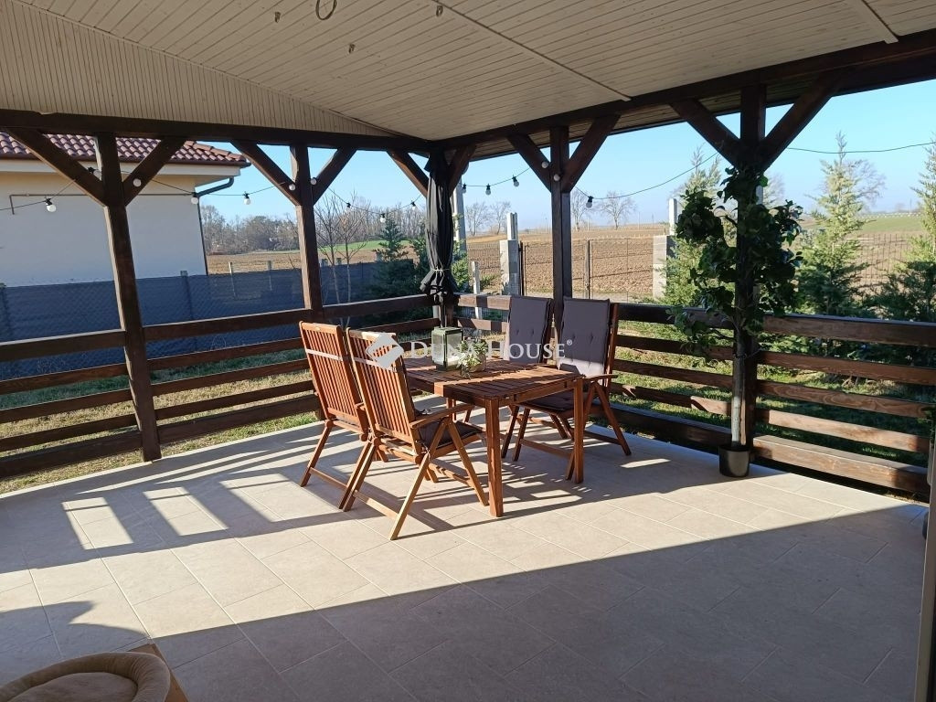 - a hátsó fedett teraszra, a nappaliból tolóajtón keresztül tudunk kimenni