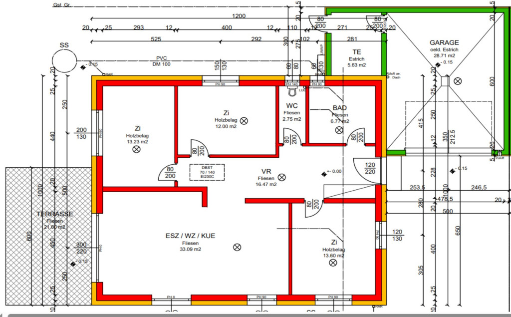 A ház négy arányos szobából áll, köztük három hálószobából és egy körülbelül 33 m²-es, nyitott konyha/nappaliból. A nagy, háromrétegű üvegezésű ablakok nemcsak világos légkört biztosítanak, hanem kiváló hőszigetelést is.