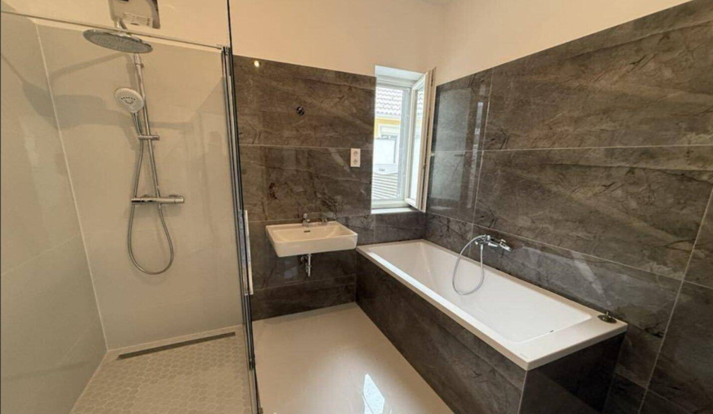 A fürdőszobában kád, külön zuhanyzó és egy ablak található a kellemes természetes fény érdekében. A nappaliban és a folyosón légkondicionáló, valamint az elektromos redőnyök előkészítése is megtörtént.