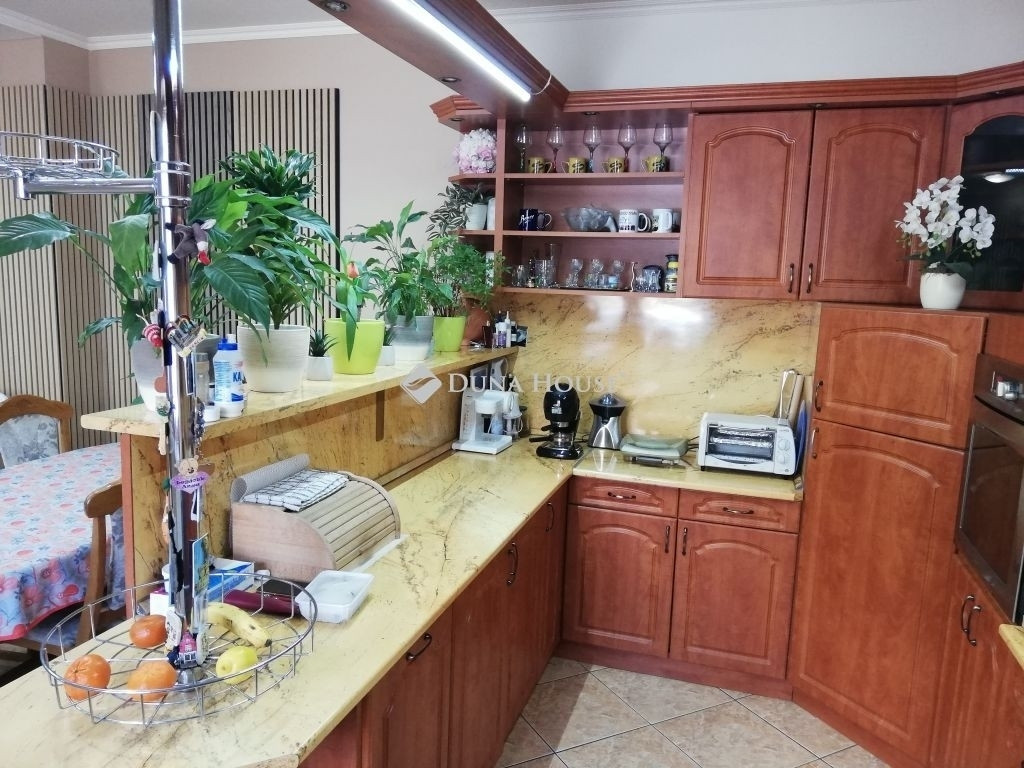 A ház földszintjén előtér, tágas nappali-étkező-konyha, a tetőtérben 3 szoba, fürdő+WC és beépített bútorok találhatók. A fürdőben nagy sarokkád, a melegről új kondenzációs és vegyes tüzelésű kazán gondoskodik radiátorral és padlófűtéssel. 7 db klíma biztosítja a kellemes hőérzetet. Az épület alatt pince is található.