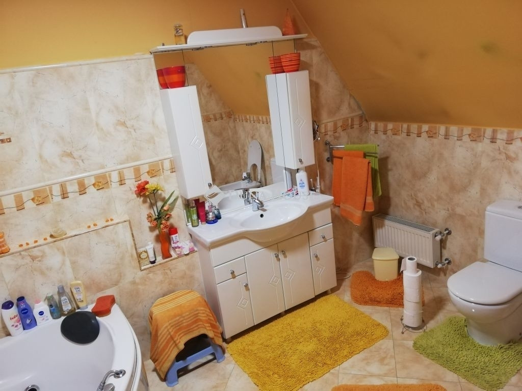 Tetőtér: 3 szoba beépített bútorokkal, világos előtér, fürdőszoba sarokkáddal, külön WC