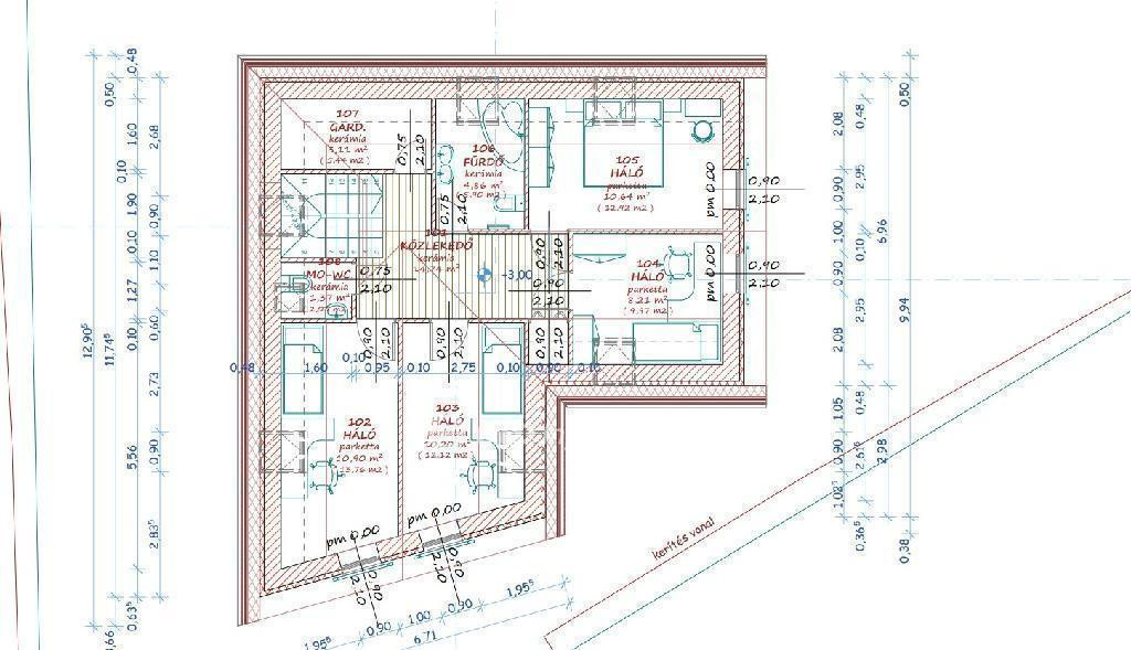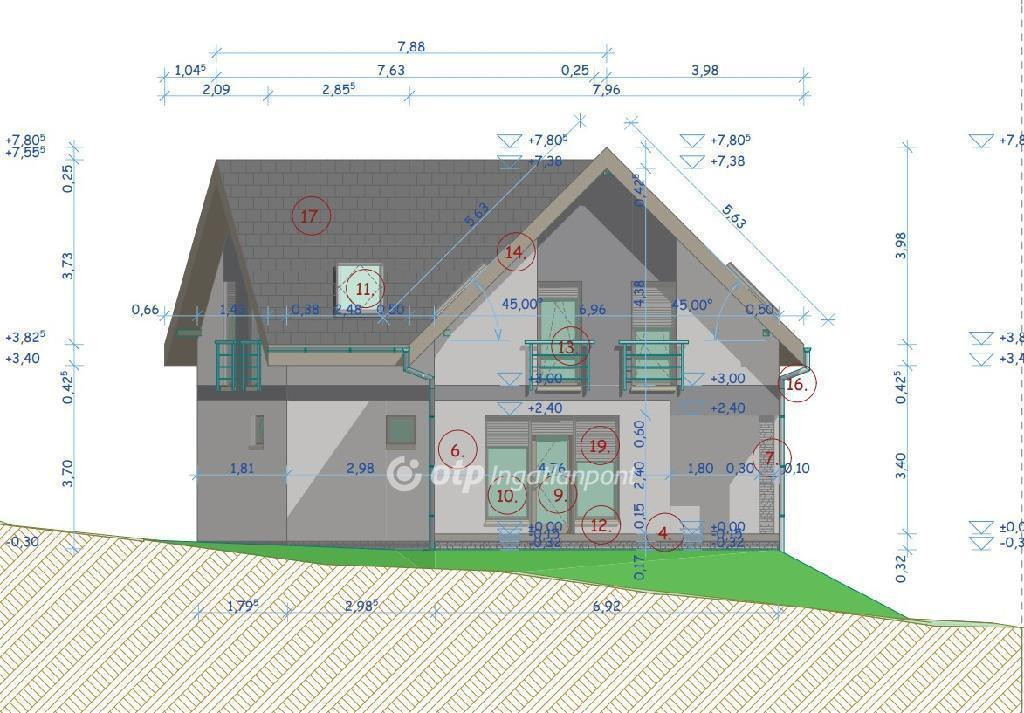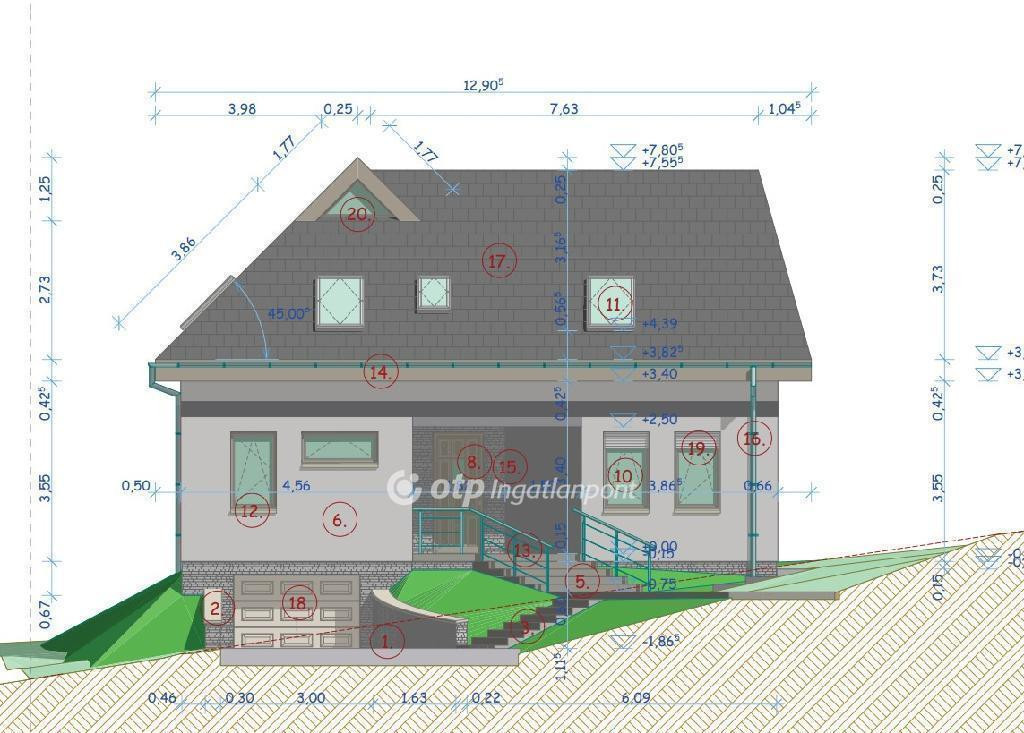 -Tervezett ház bruttó alapterülete: 210 nm (20 nm mélygarázs + 95 nm földszint + tetőtér)