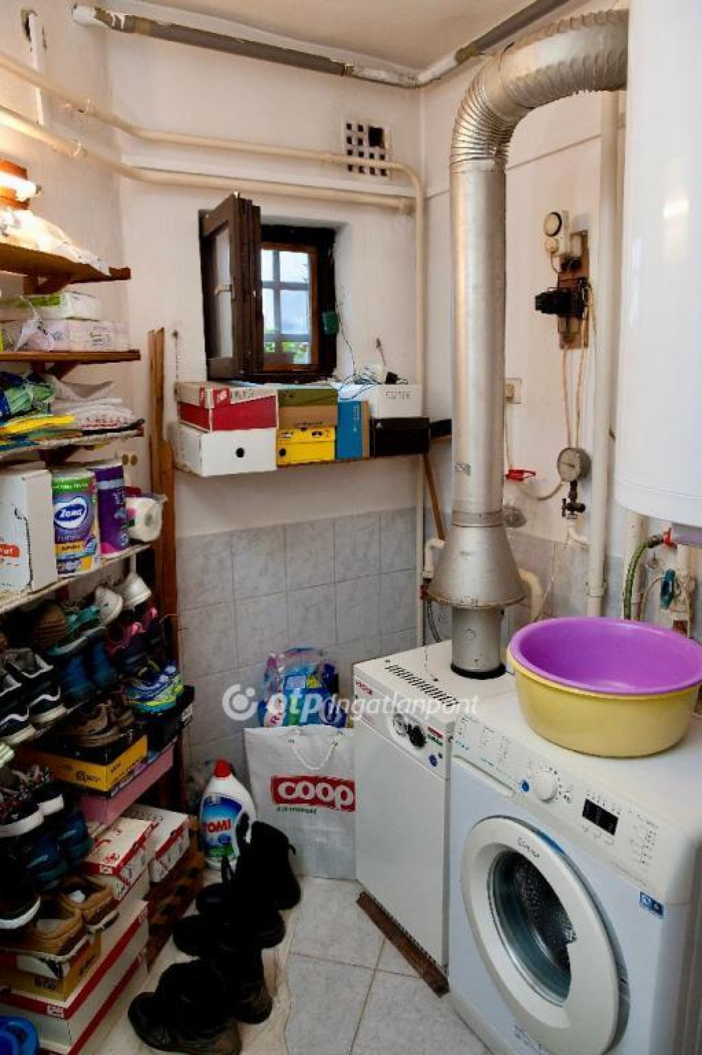 A ház fűtését gázkazán biztosítja, radiátoros hőleadással. A garázs az ingatlan részét képezi és közvetlenül megközelíthető a ház belsejéből, ami rendkívül praktikus és biztonságos megoldás, különösen a téli hónapokban.