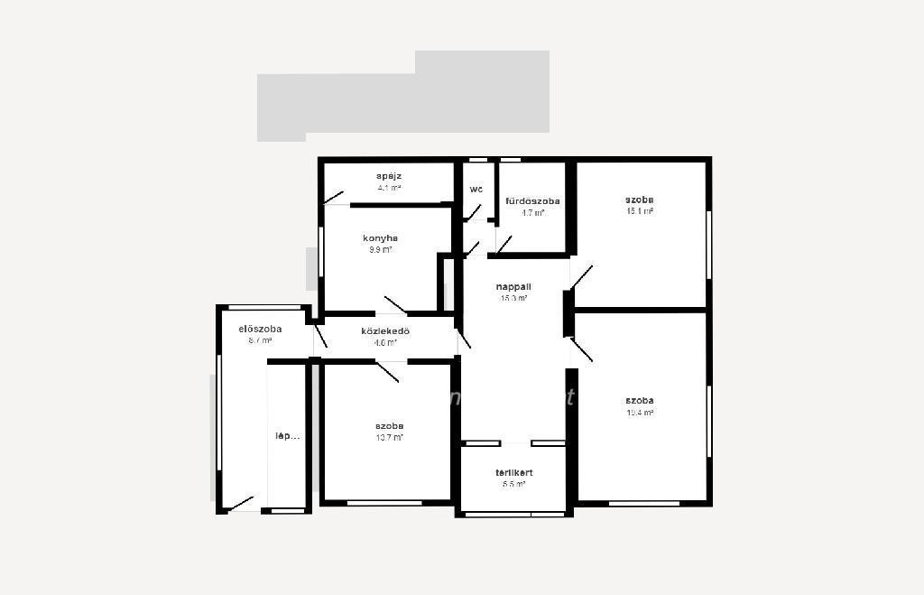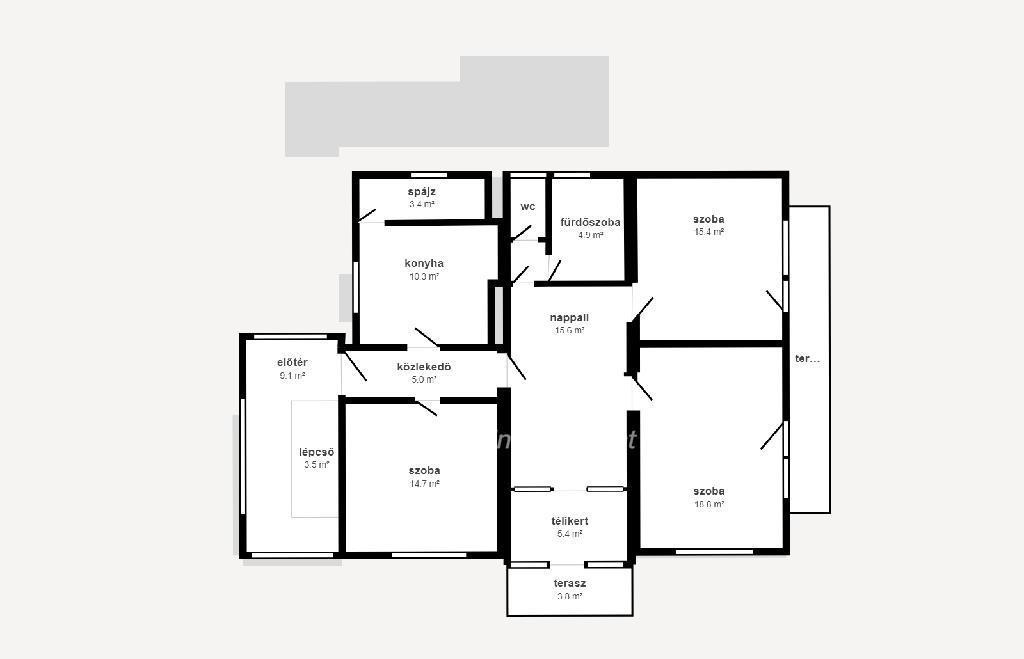 Az első lakószinten 3 teljes értékű szoba, konyha + spájz, nappali, külön fürdőszoba és wc kapott helyett. Az első lakószint hasznos alapterülete 101nm.