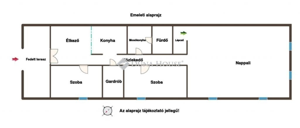 2 hálószoba, gardrób, étkező-konyha, fürdőszoba, nappali, mosókonyha.