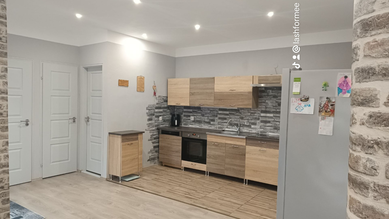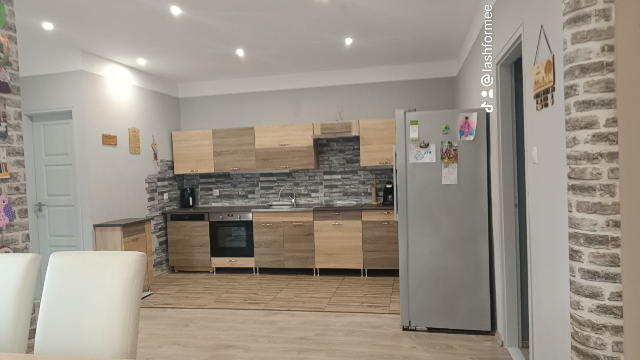 Új, gépesített konyha beépített főzőlappal, sütővel,mosogató géppel