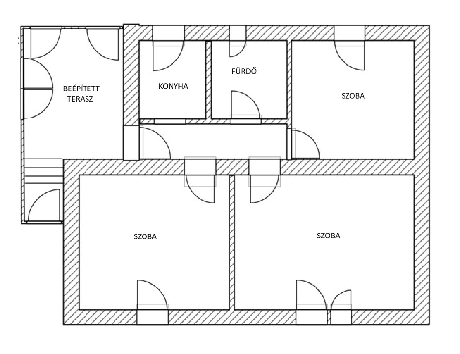 -festett falak, amelyeket az állapot pontos megítélése érdekében nem festettek le, az egyes helyiségekben a vízkár nyoma kijavítandó