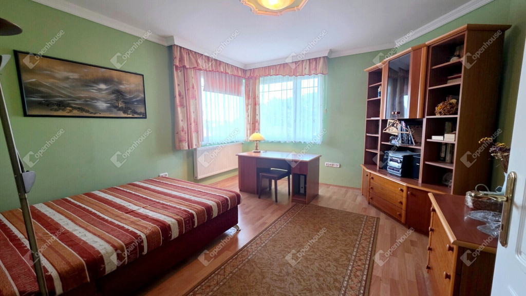 - 3 tágas hálószoba, fürdőszoba dupla kézmosóval, bidével, vendég wc, tároló, gardrób és lépcsőház van még az emeleten