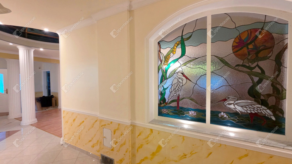 - az emelet központja egy 50 m2-es nappali, erkéllyel, díszüveggel, kupolával