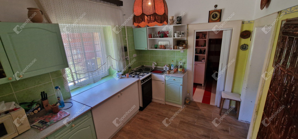 - a fűtésről gáz konvektorok és egy a nappali és a konyha között található dekoratív cserépkályha gondoskodik