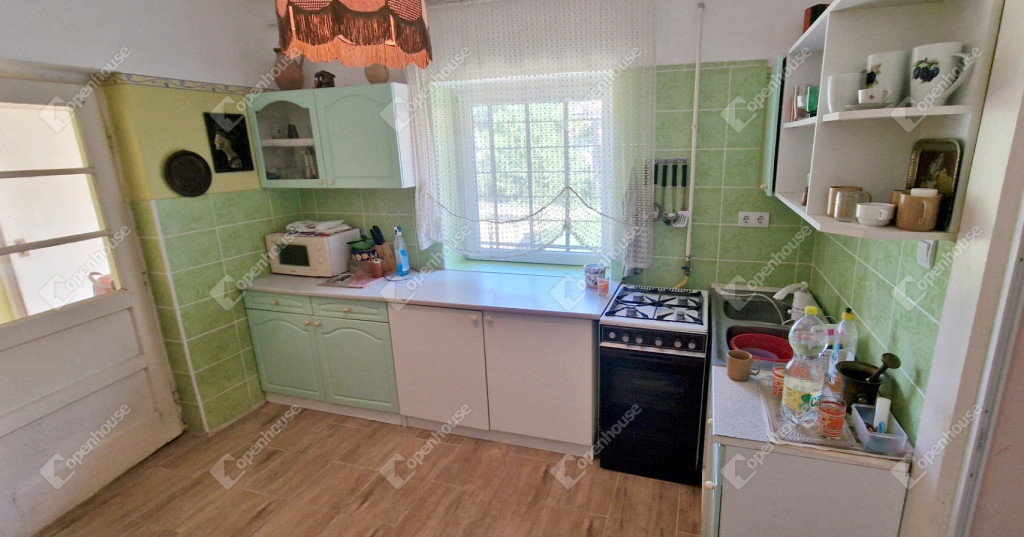 - a fűtésről gáz konvektorok és egy a nappali és a konyha között található dekoratív cserépkályha gondoskodik