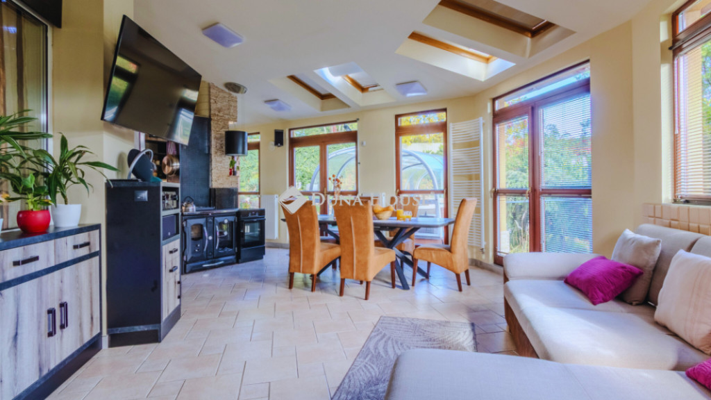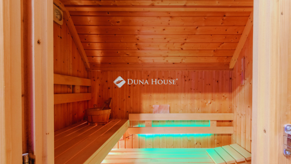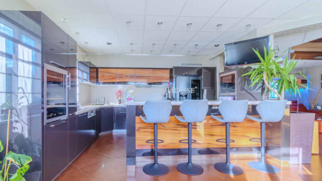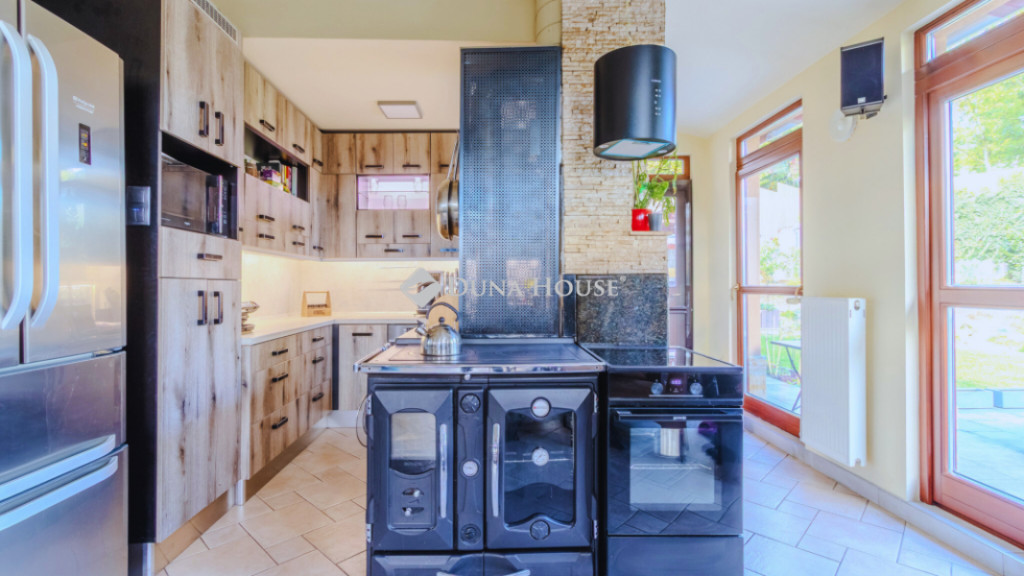 A kertkapcsolatos, beépített terasz saját aktív konyhával, étkezővel és pihenősarokkal rendelkezik, így az ingatlan két teljes értékű konyhával biztosít kényelmes életteret.
