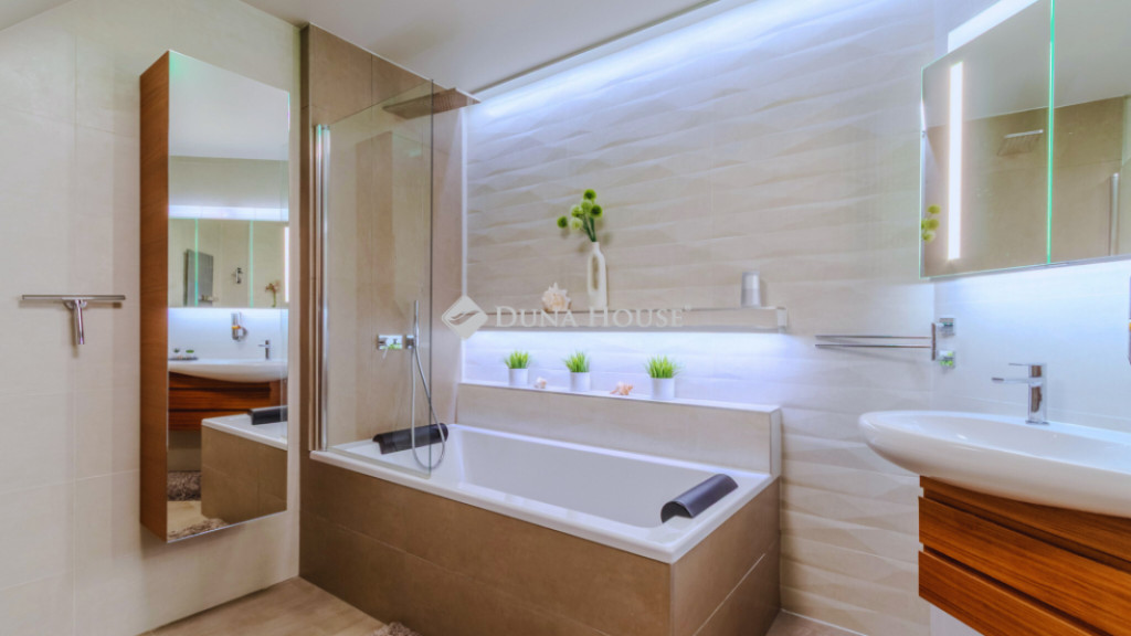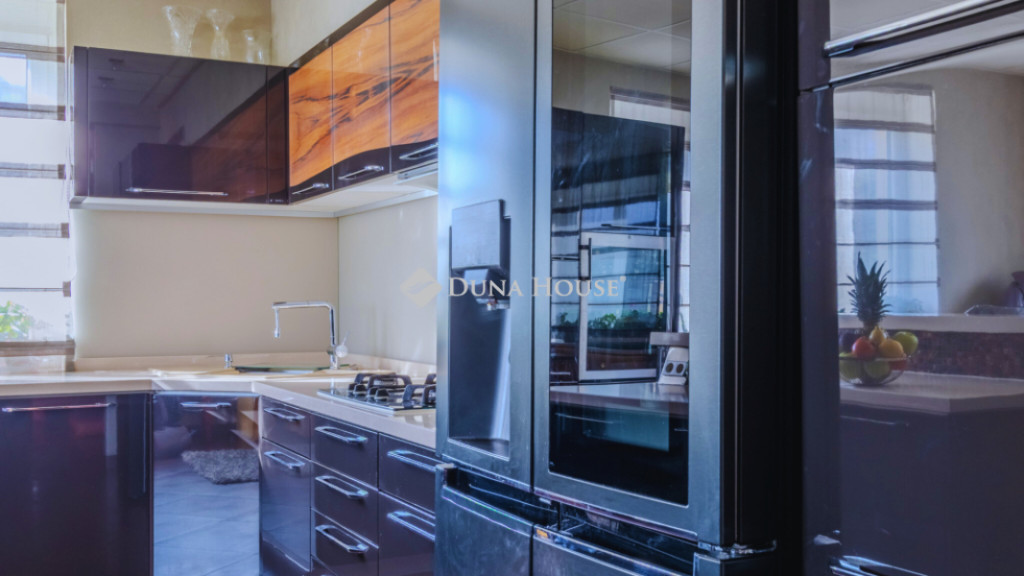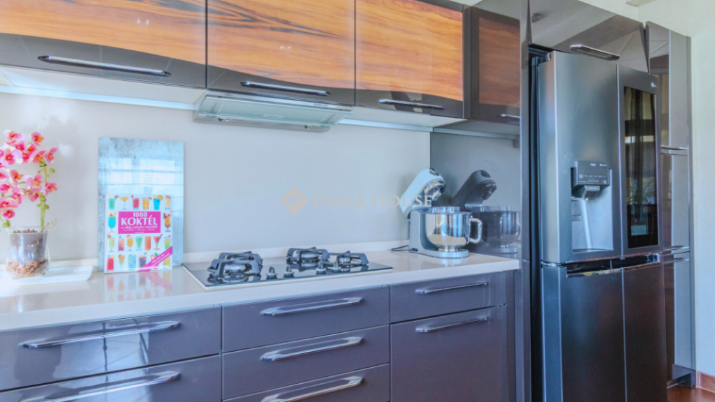 A kertkapcsolatos, beépített terasz saját aktív konyhával, étkezővel és pihenősarokkal rendelkezik, így az ingatlan két teljes értékű konyhával biztosít kényelmes életteret.