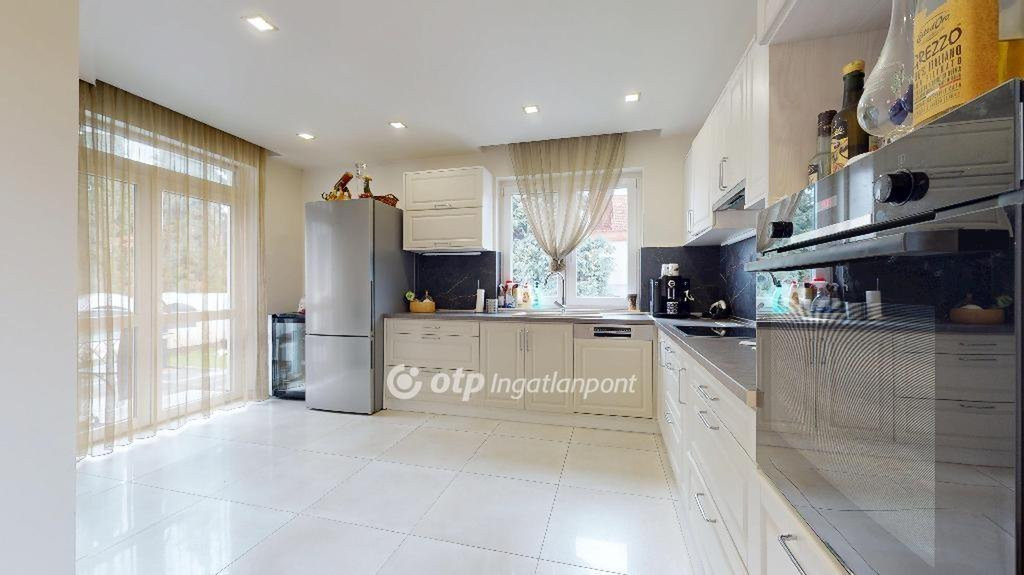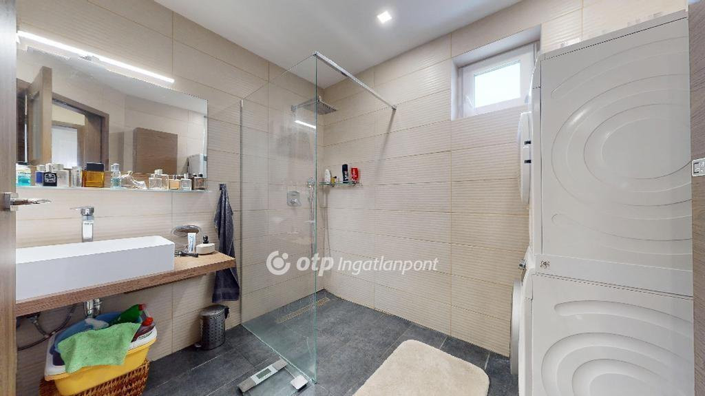 A konyha a ház egyik ékköve: modern konyhabútor BOSCH gépekkel, ahol a funkcionalitás és az esztétikum tökéletes összhangban van. A fürdőszoba szintén igényes kialakítású, minőségi burkolatokkal és épített zuhanyzóval, letisztult, mai stílusban.